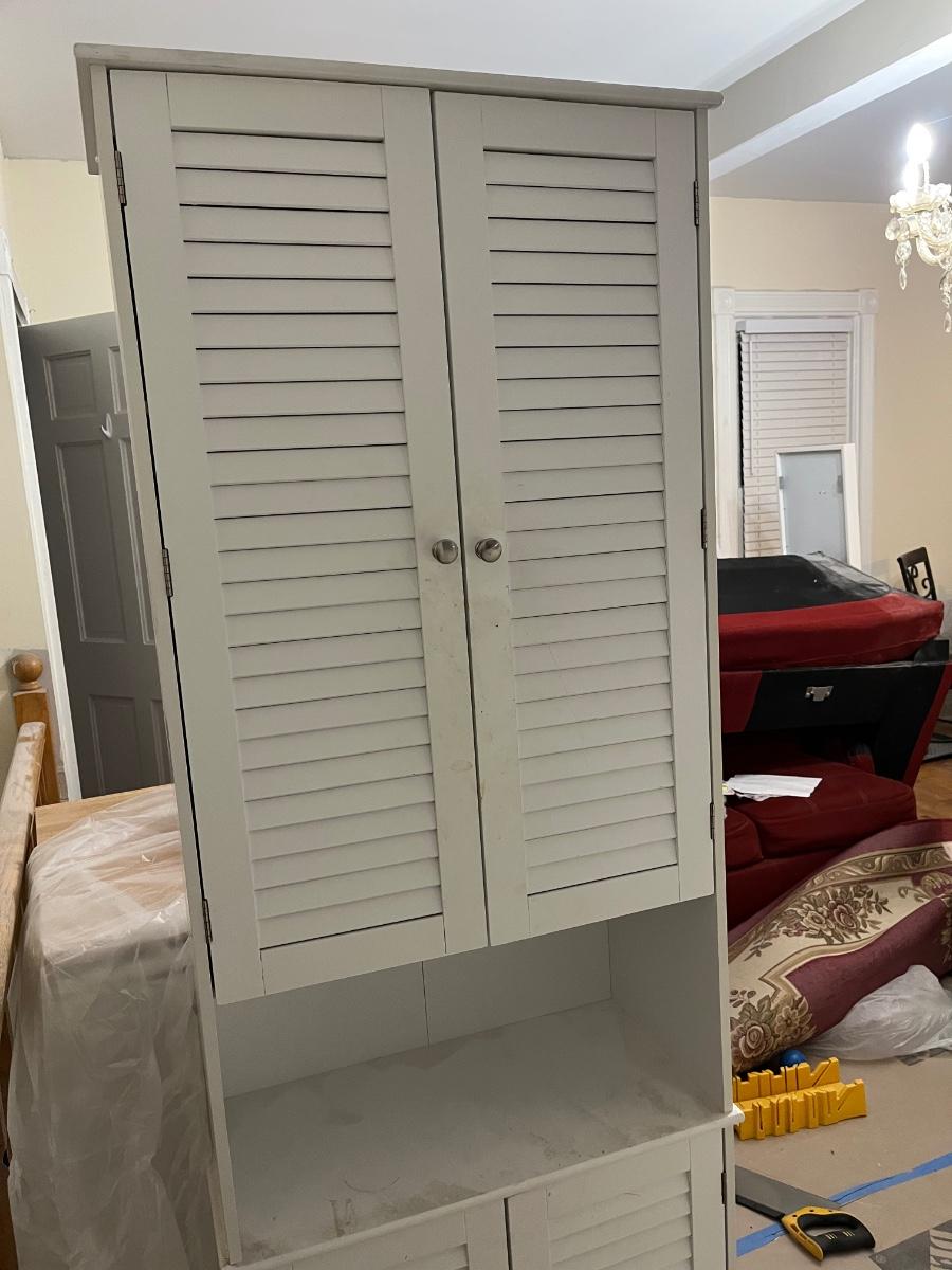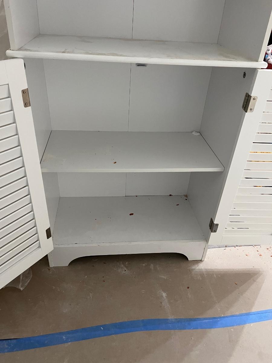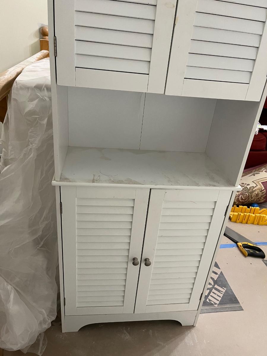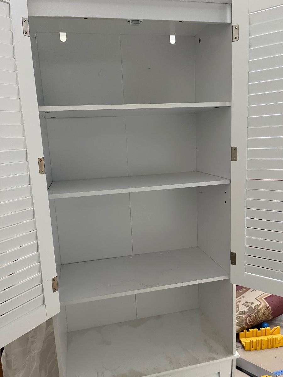 Freestanding Bathroom Storage Cabinet with Shutter Doors and Adjustable Shelves, Toilet Vanity Cabinet - White