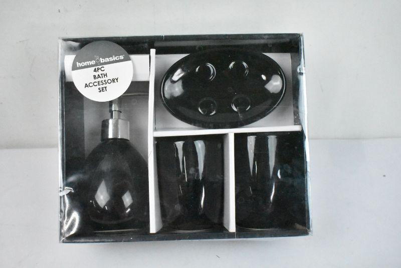 Home Basics 4-Piece Black Bathroom Accessory Set - New
