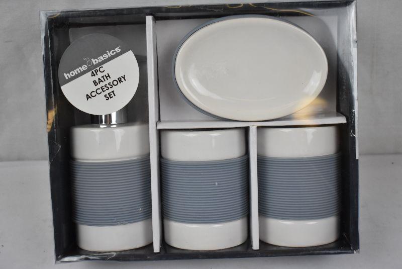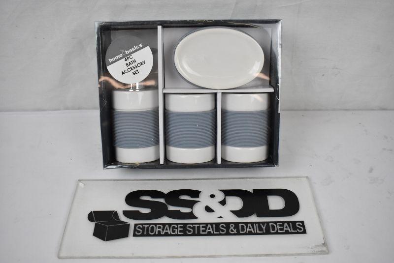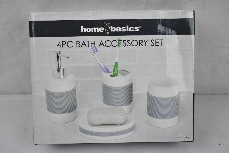 Home Basics 4-Piece White with Rubber Bathroom Accessory Set, $17 Retail - New