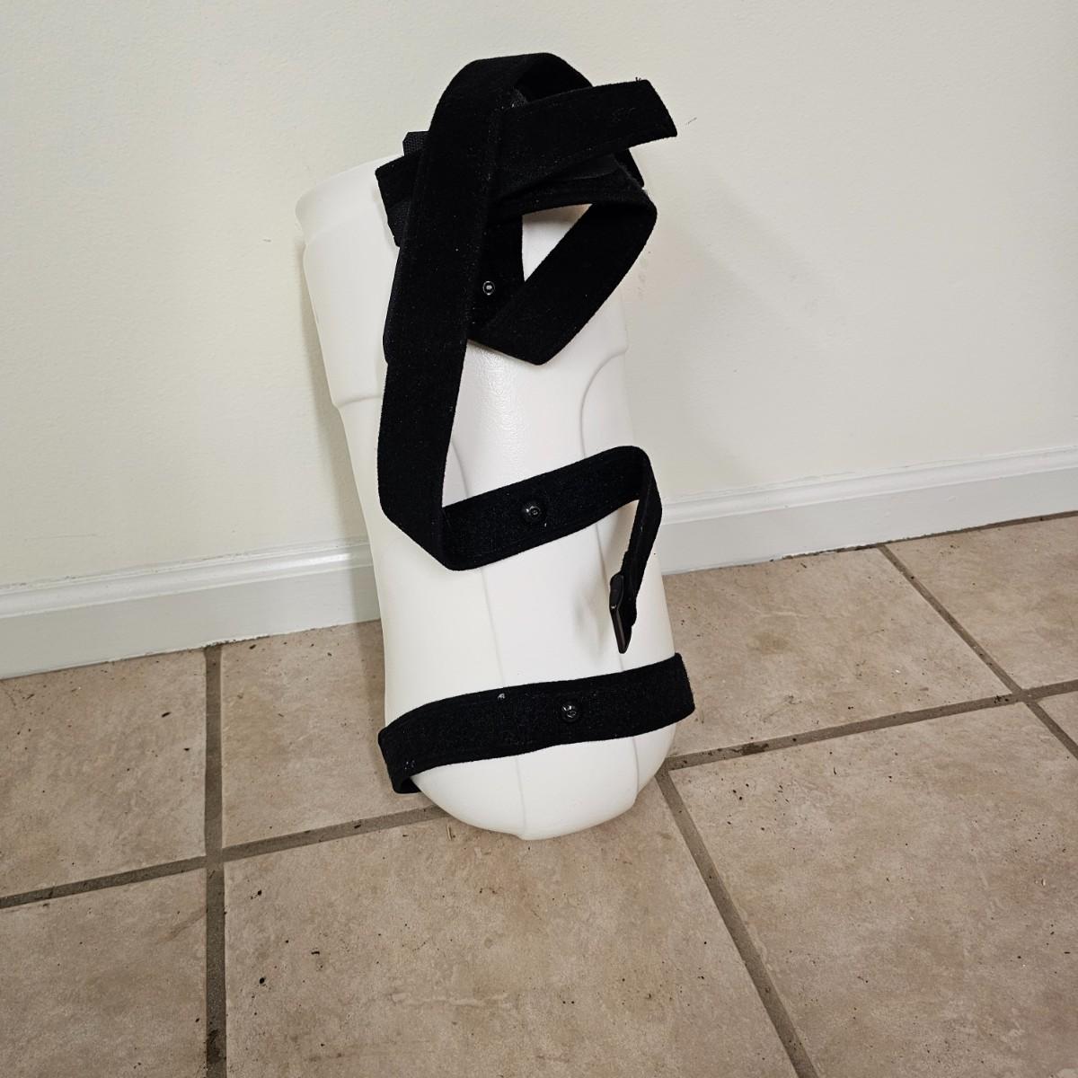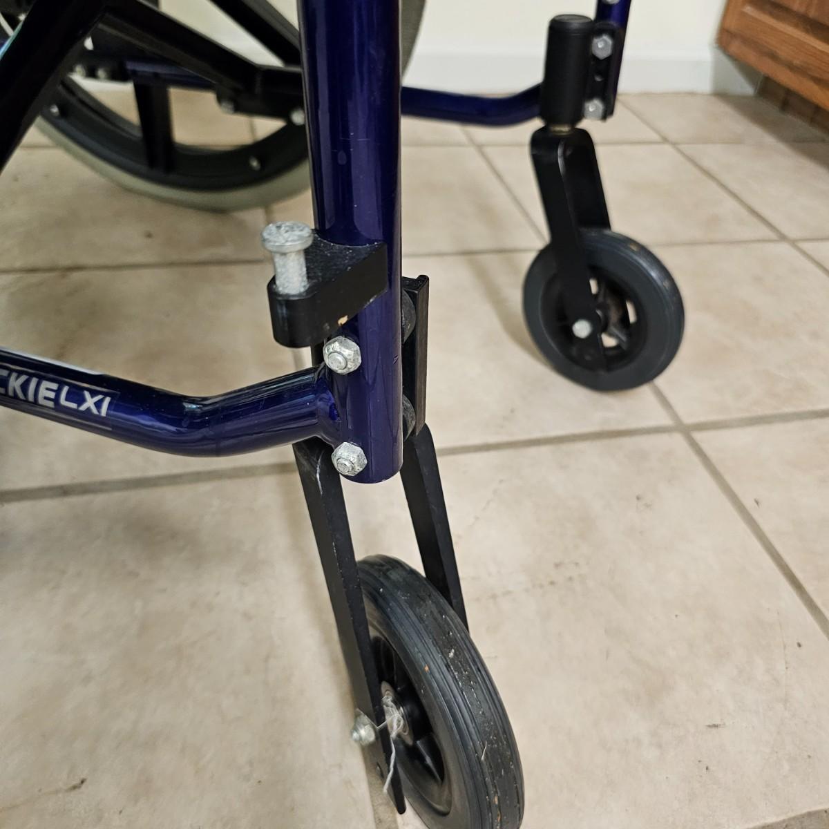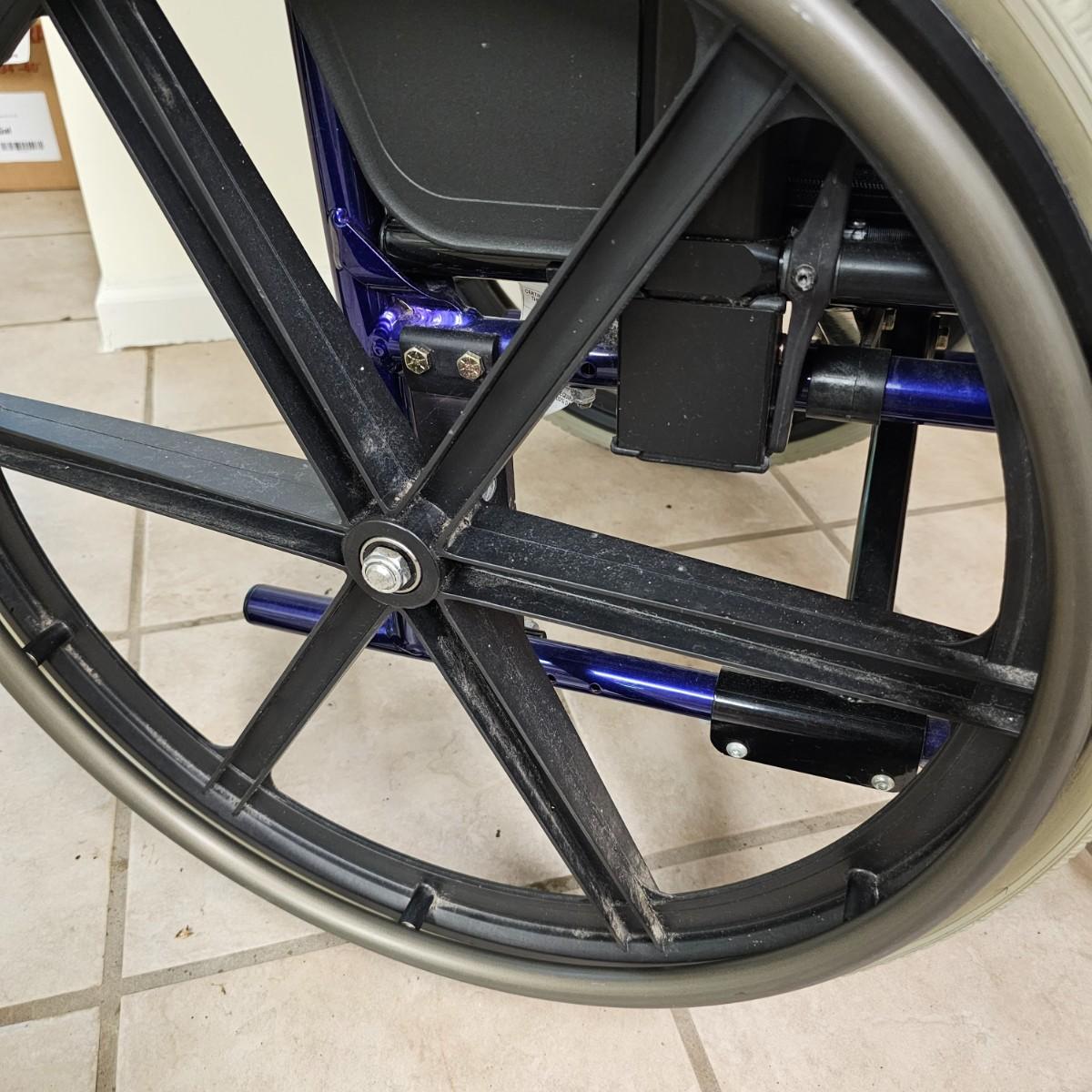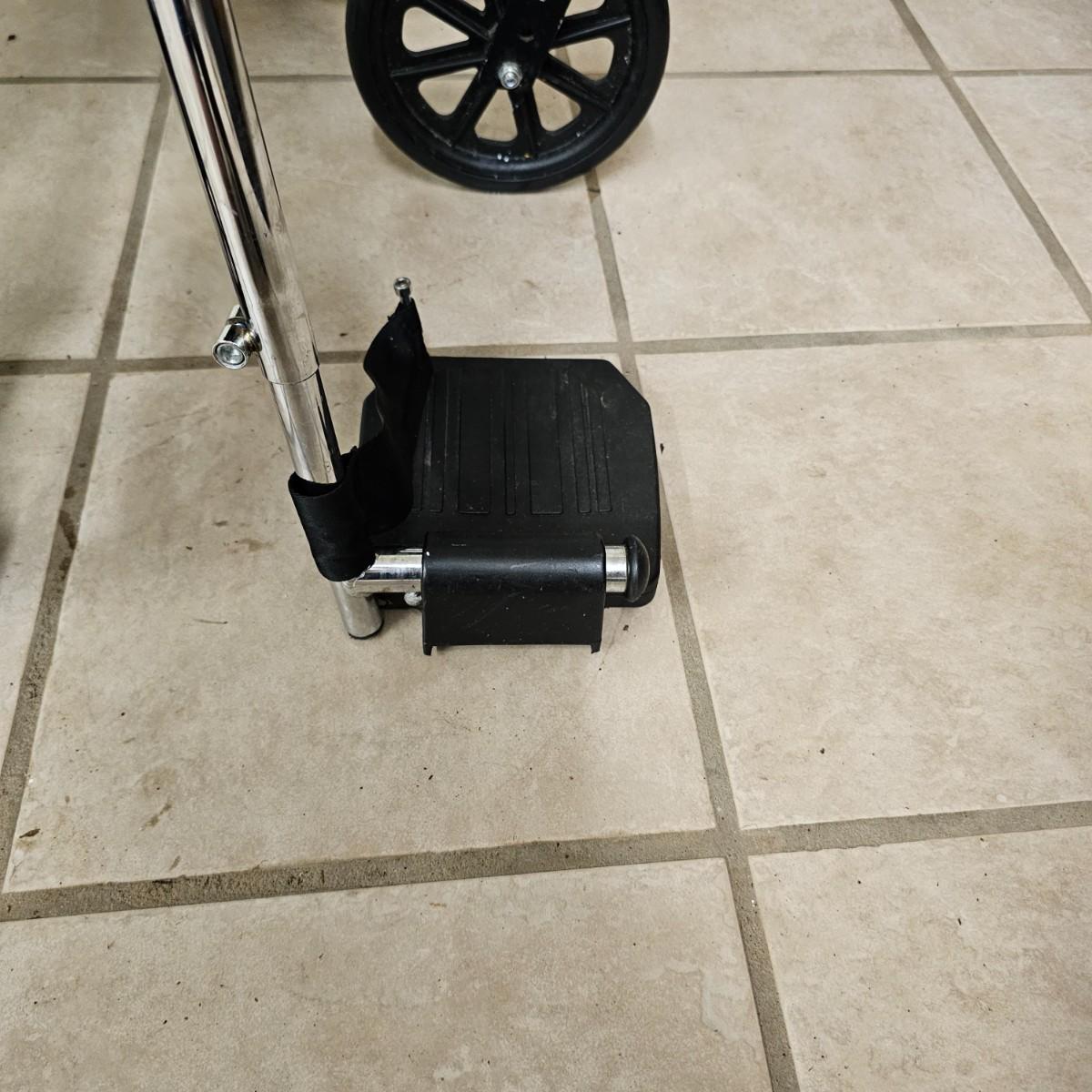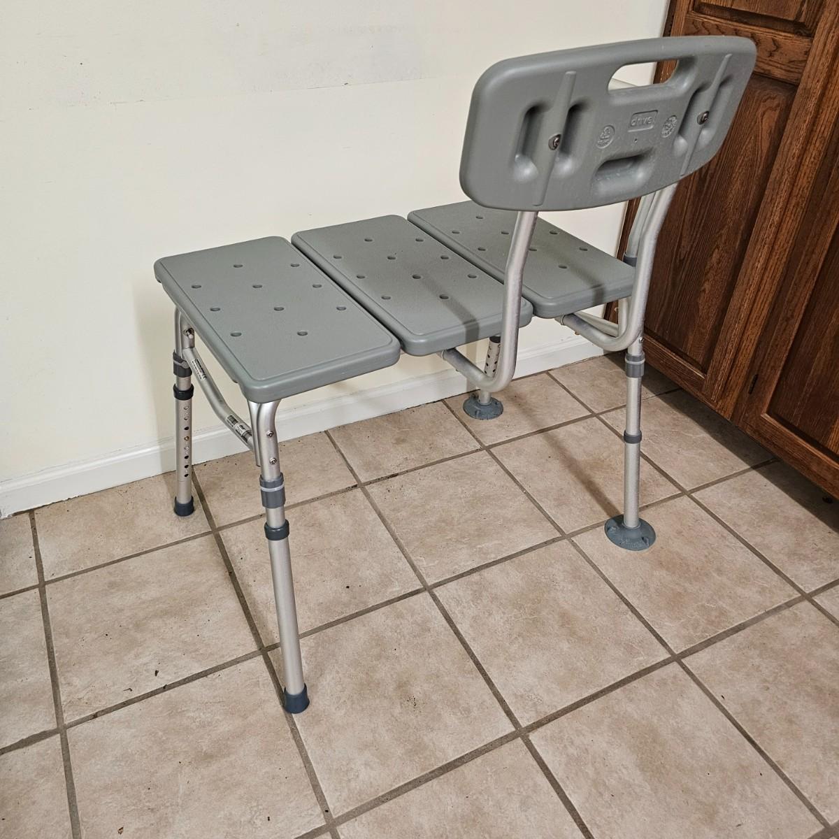 Several pieces of equipment for home care and mobility. Collapsible walker, large chair and a half shower seat with back and adjustable legs, 30" x 22" x 37"H. One aluminum crutch, one hand cane and a type of leg wrap/protector by Limbguard. Some additional rail pieces, usage unknown. Two foldup wheelchairs; one Quickie LXI chair with removable back and seat, 21" x 32" x 36"H. One Excel K4 chair with right side attachable foot rest, 25" x 33" x 36"H. Both chairs have hand operated brakes. See photos for details. Local pickup only.