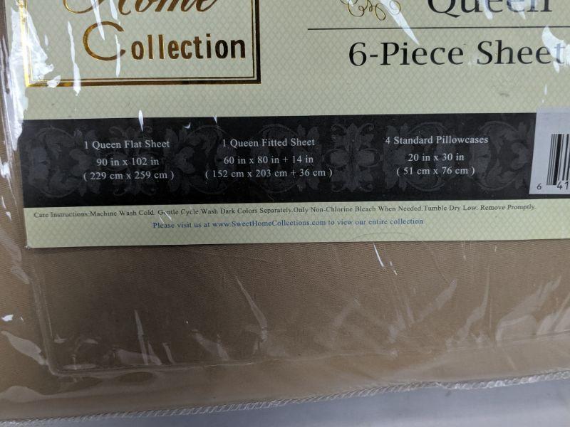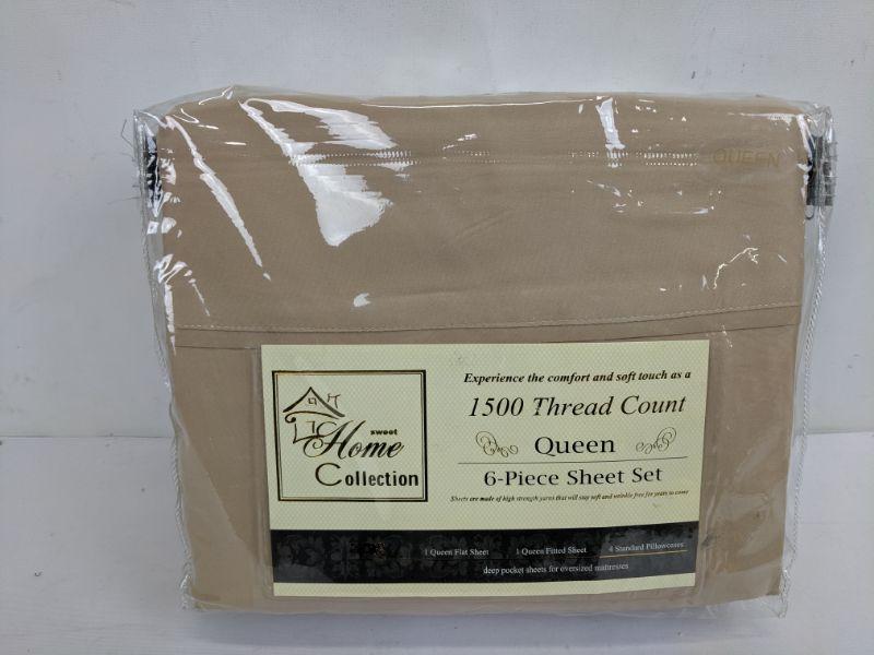 Home Collection Queen 6-Piece Sheet Set, 1500 Thread Count, Tan - New