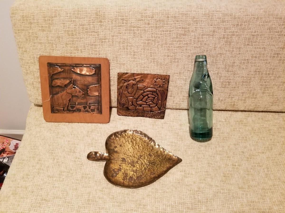 Bottle with marble and copper art work