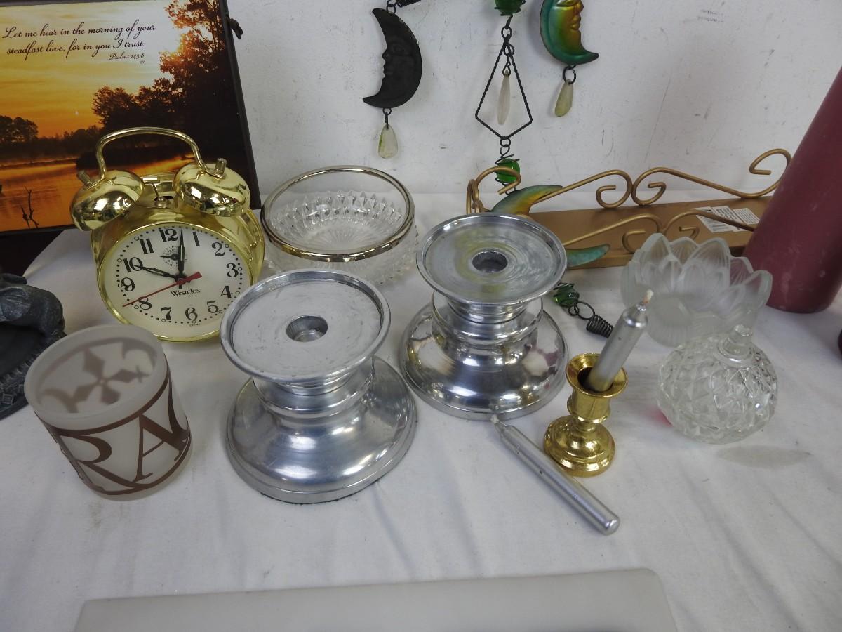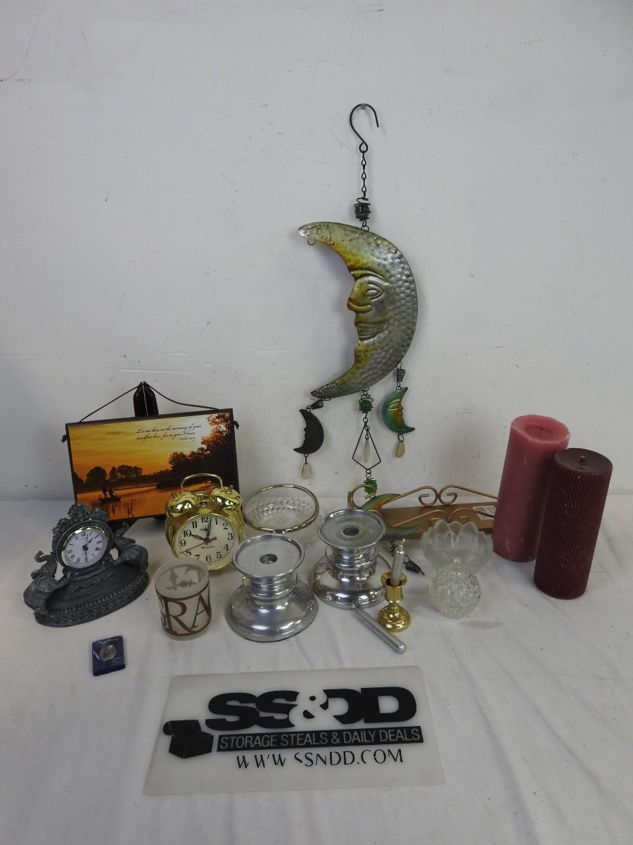 Home Décor: Candles and Holders, 2 Nice Clocks, Moon Hanging Decoration, Frame