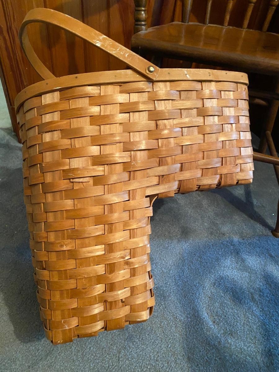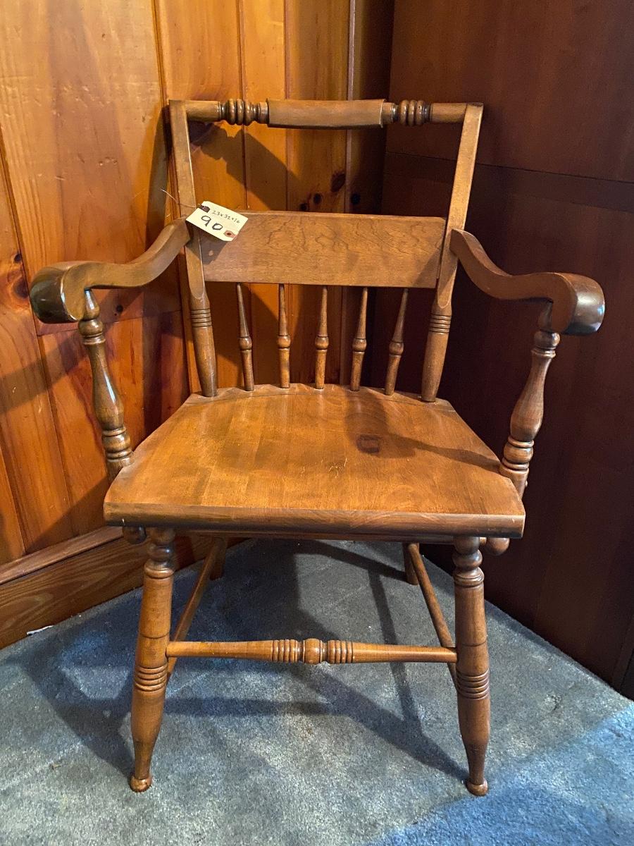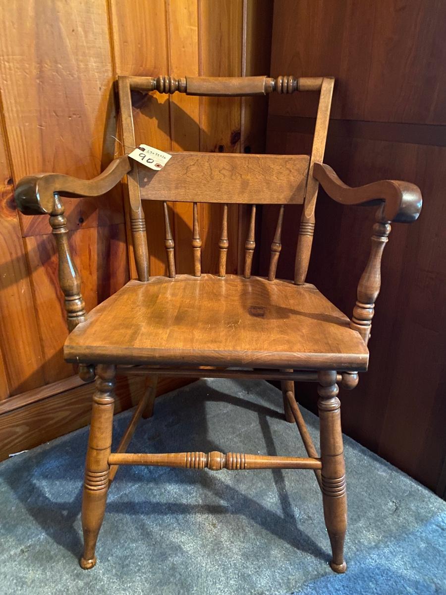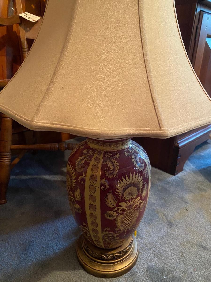 Stair Step Basket, Framed Cross, Vintage Wooden Arm Chair, Oriental Accent Lamp