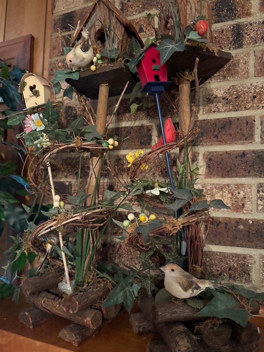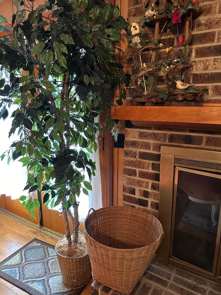 BIRD HOUSES, FICUS TREE AND PLANTER AS PICTURED