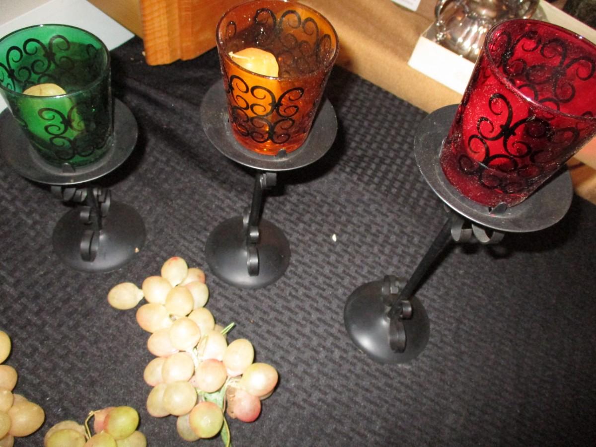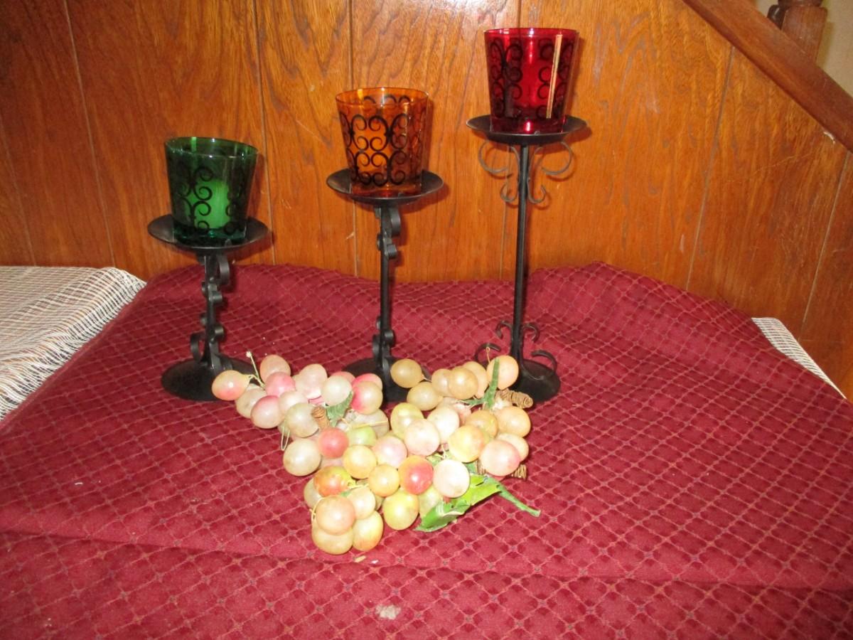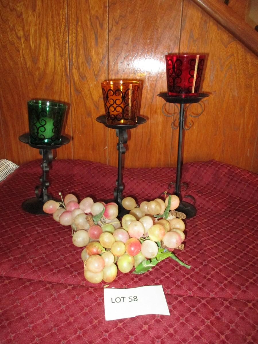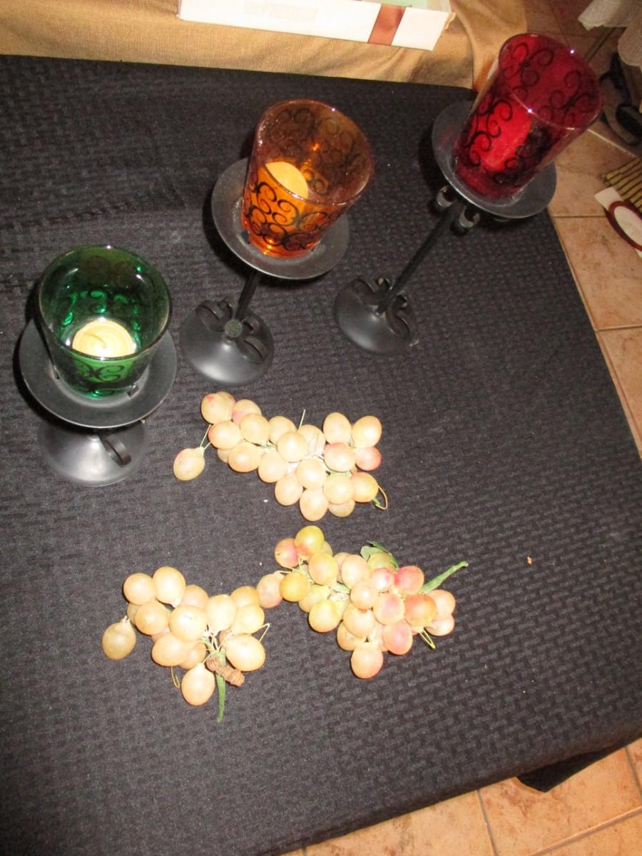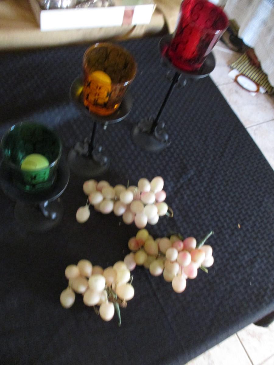 Candle stands, plastic grapes Good condition