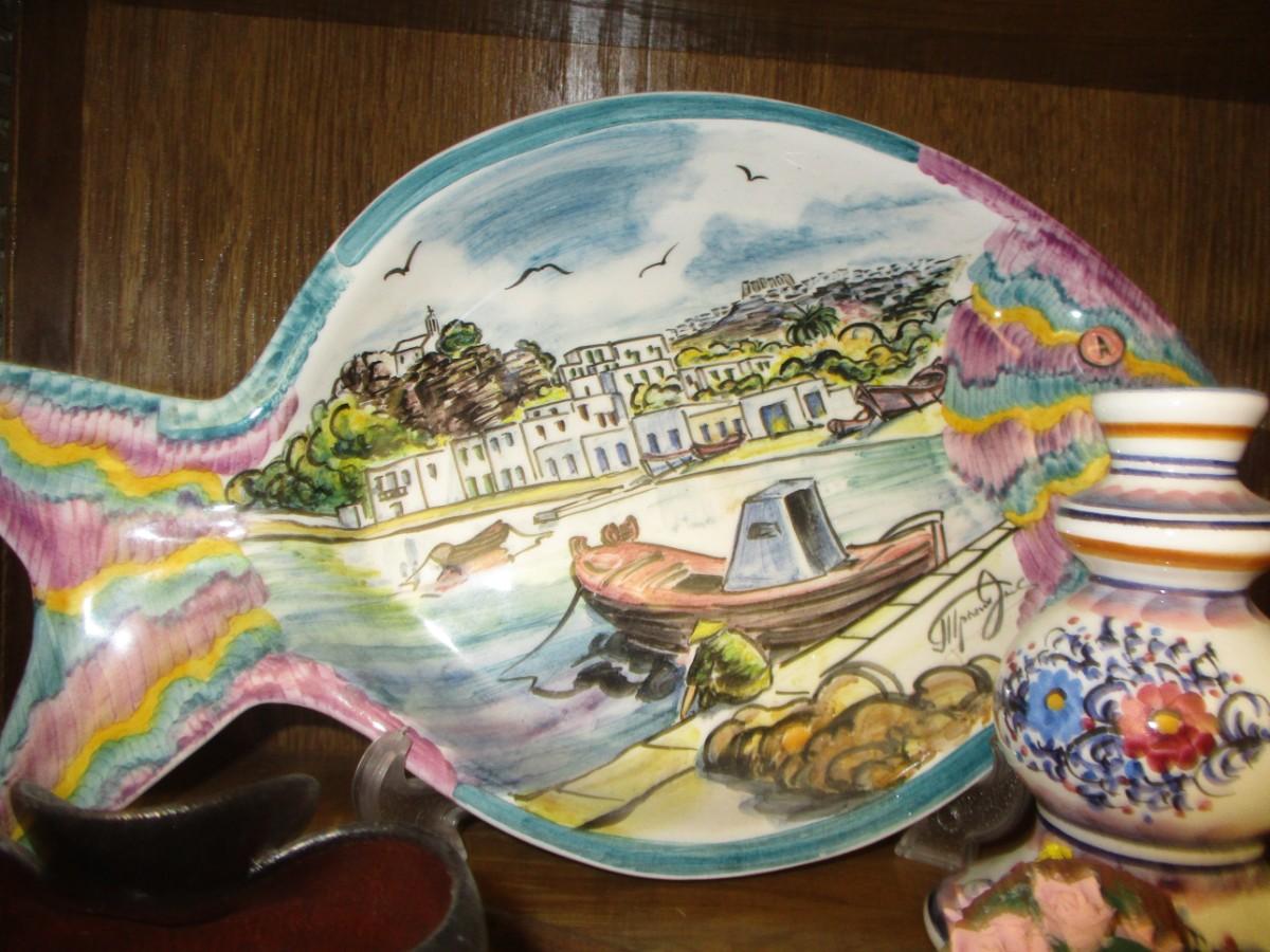 Handpainted Fish in Greece. Candle holders. Trinket box. Pottery
