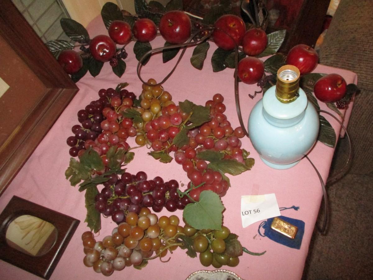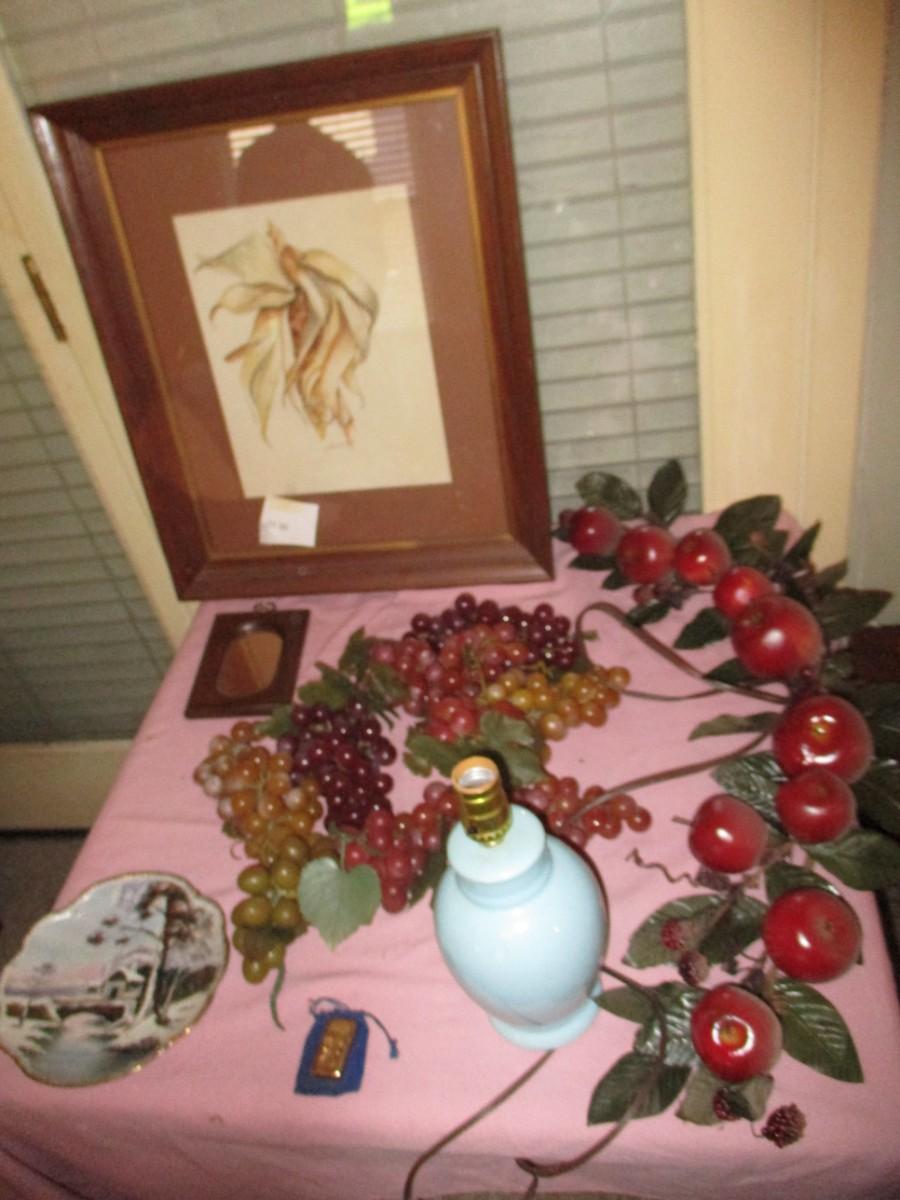 Faux Apple Wreath, Plastic grapes, Lamp, Artwork, Decorative plate
