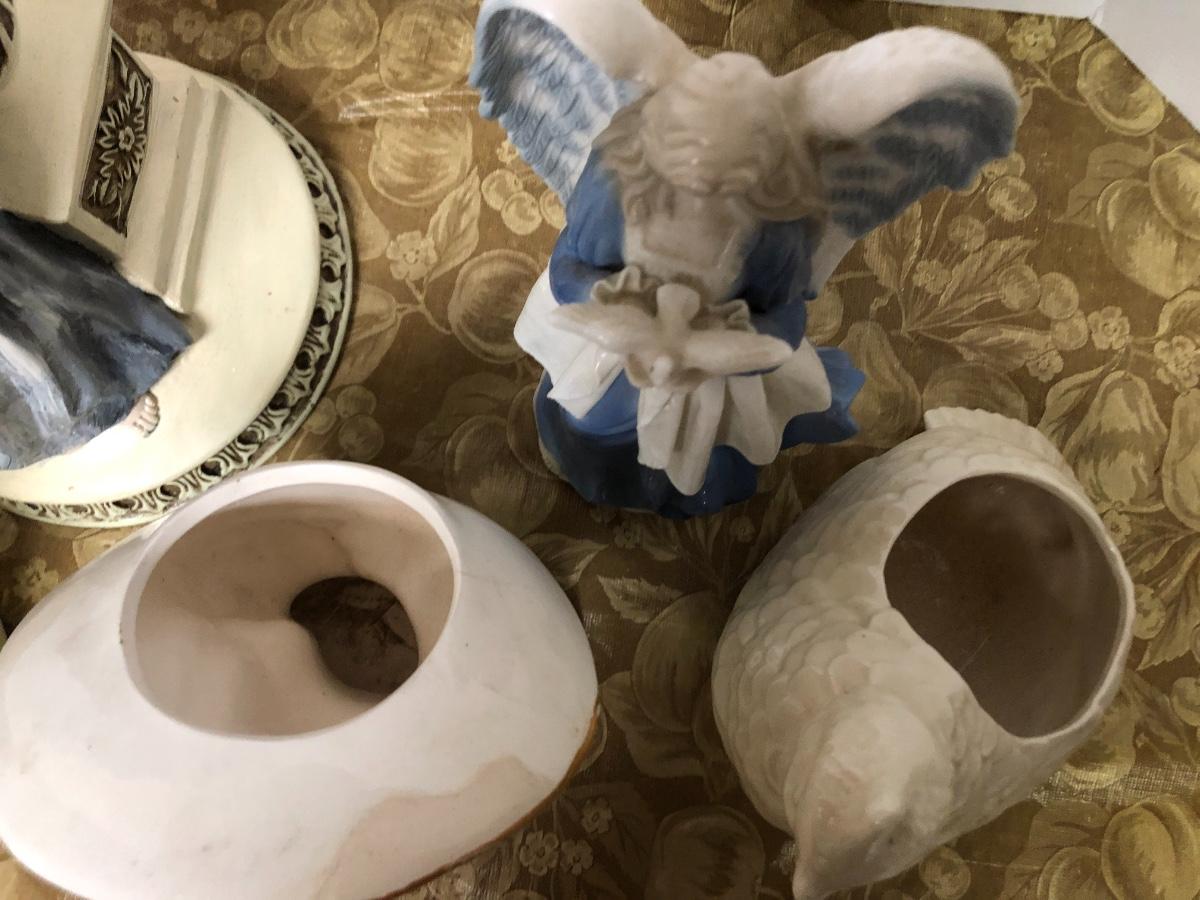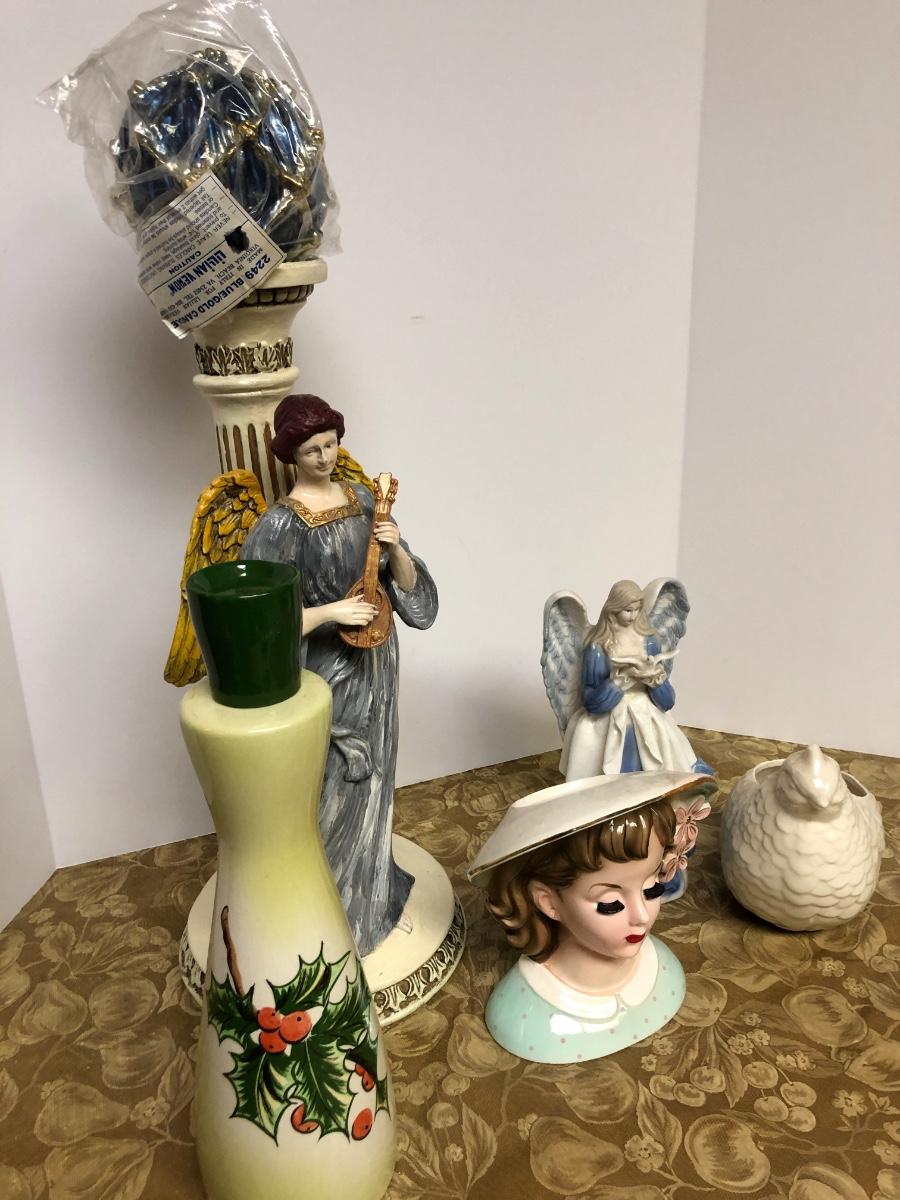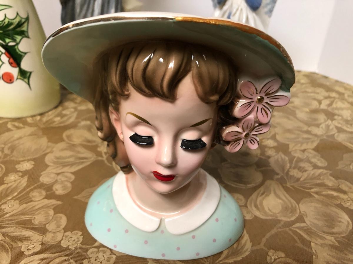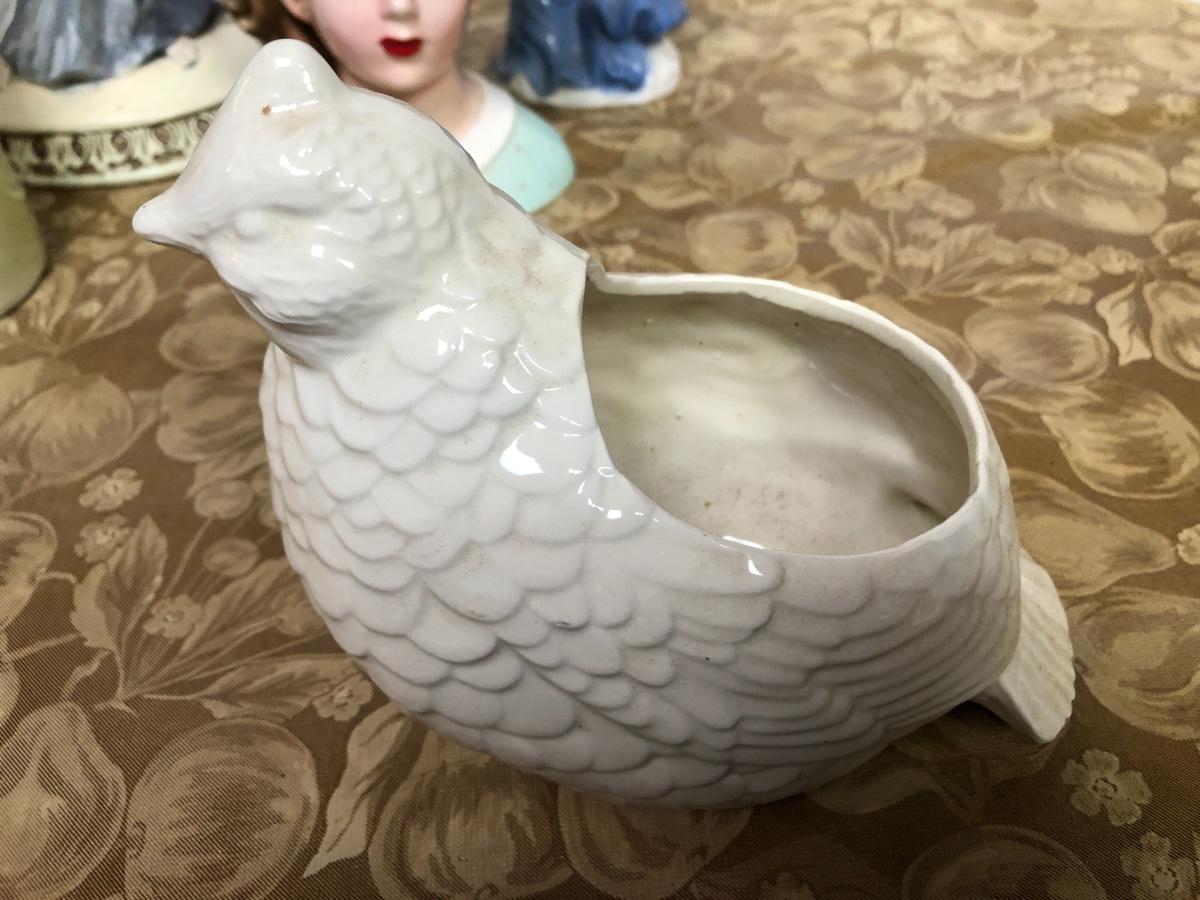All items are sold as is, as found in the estate. Please see all photos for content, measurements and condition. Lady statue appears that her hat has been repaired. Main photo only shows one ceramic Kimple Mold but located the second one as shown in the other photos.