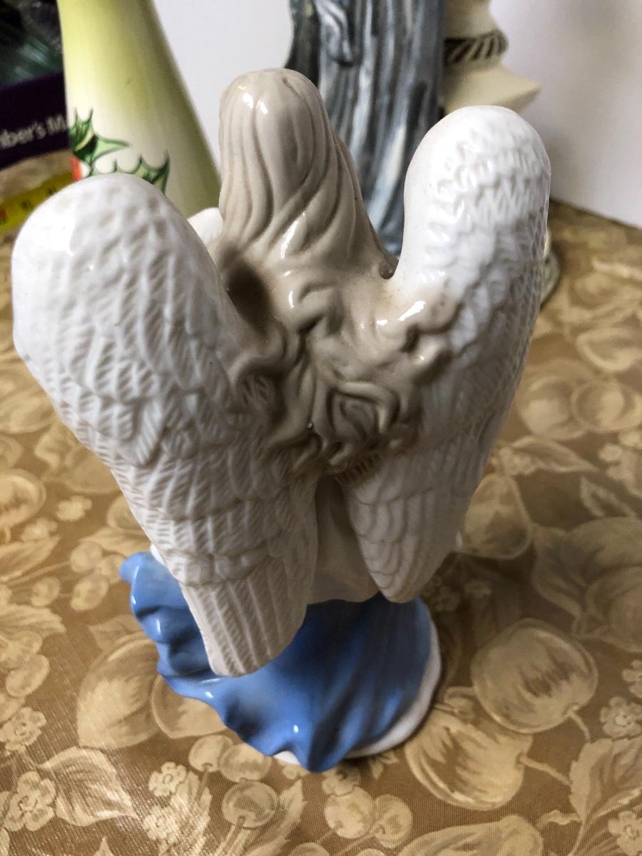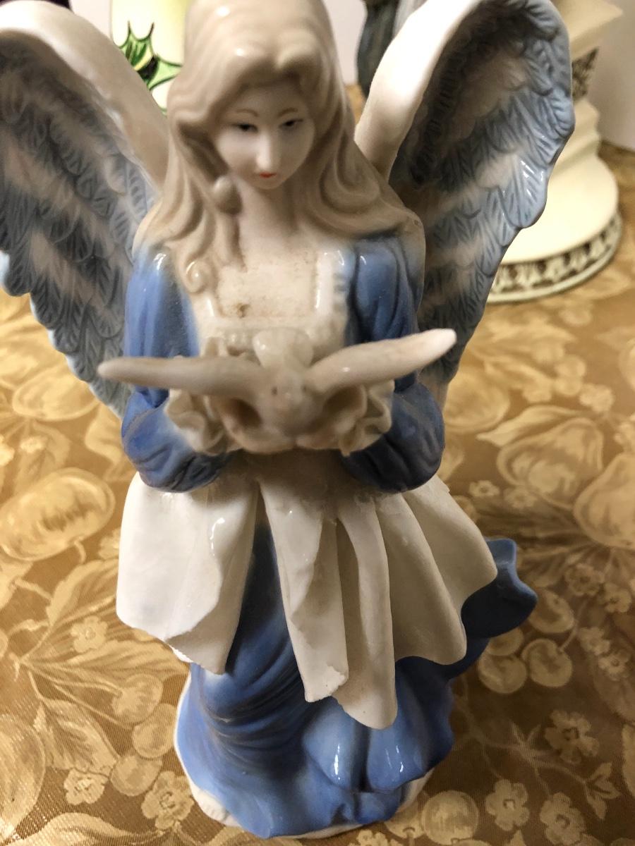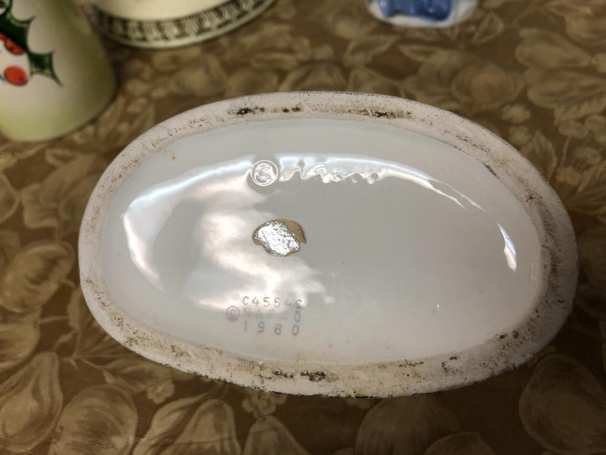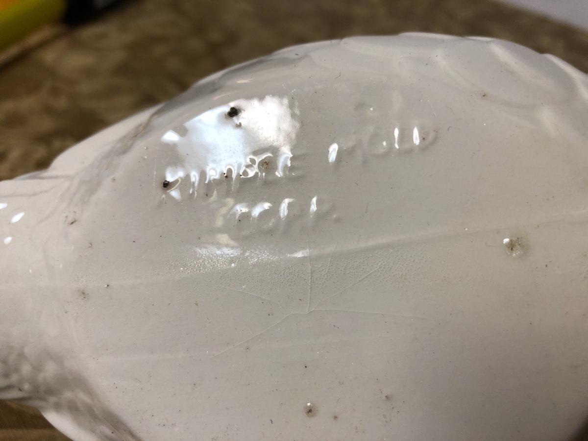 All items are sold as is, as found in the estate. Please see all photos for content, measurements and condition. Lady statue appears that her hat has been repaired. Main photo only shows one ceramic Kimple Mold but located the second one as shown in the other photos.