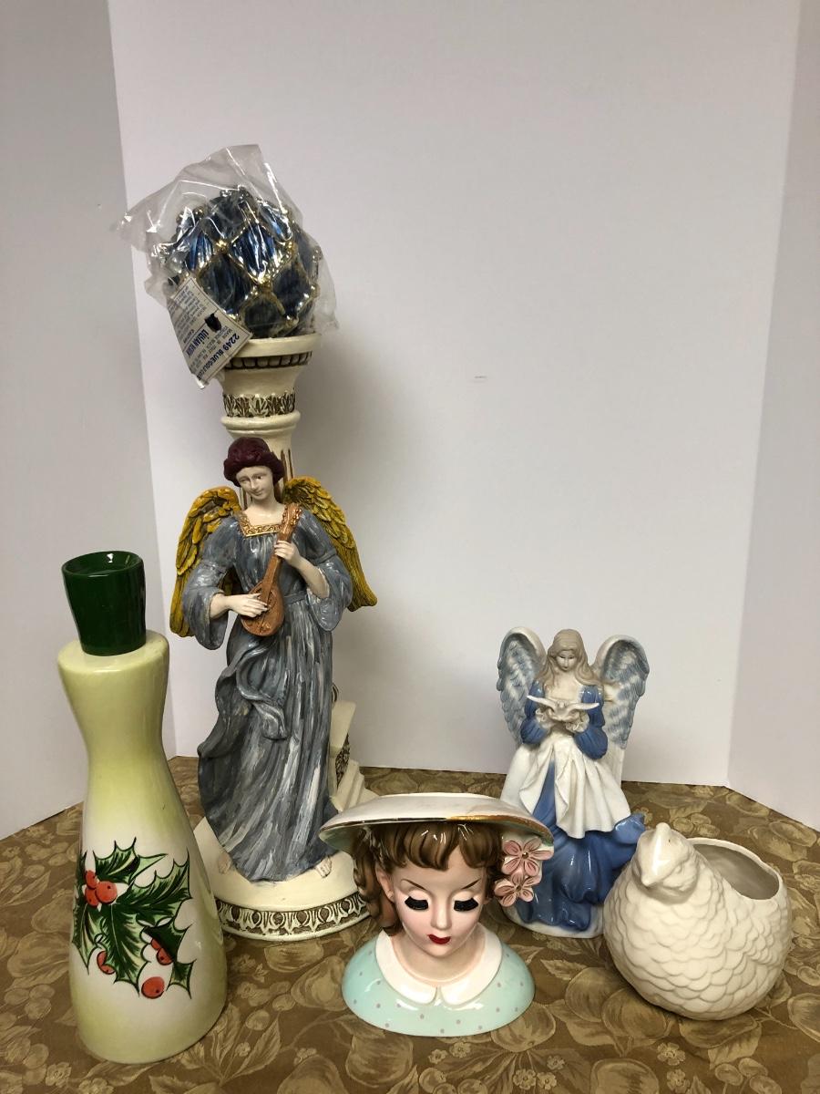 7 Pieces: A Pair of  Kimple Molds, Annapolis MD Handmade Holiday Vase w/Lid, MCM Decor & More