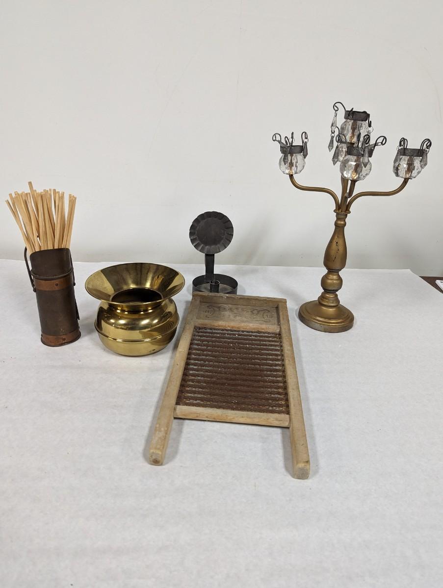 Home Decor Items includes Brass Spittoon, Washboard, Etc