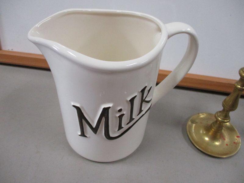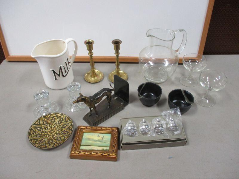 Lot 28 - Home Decor Items - Candle Holders - Milk Container - Painting