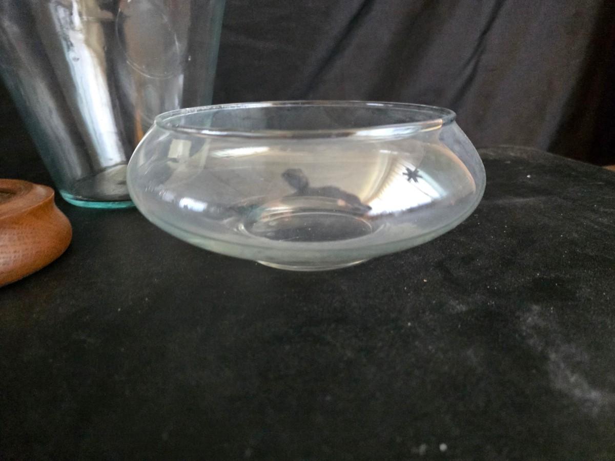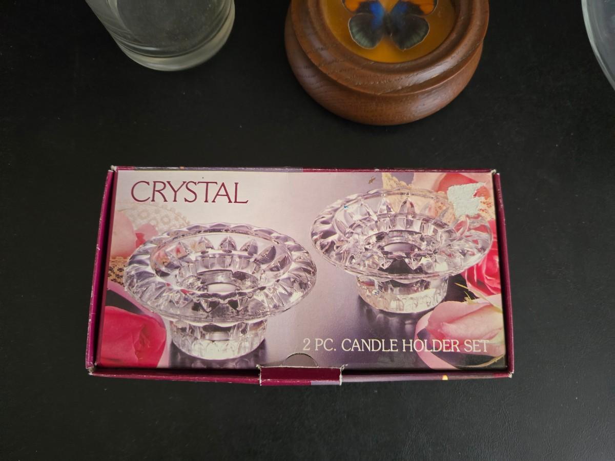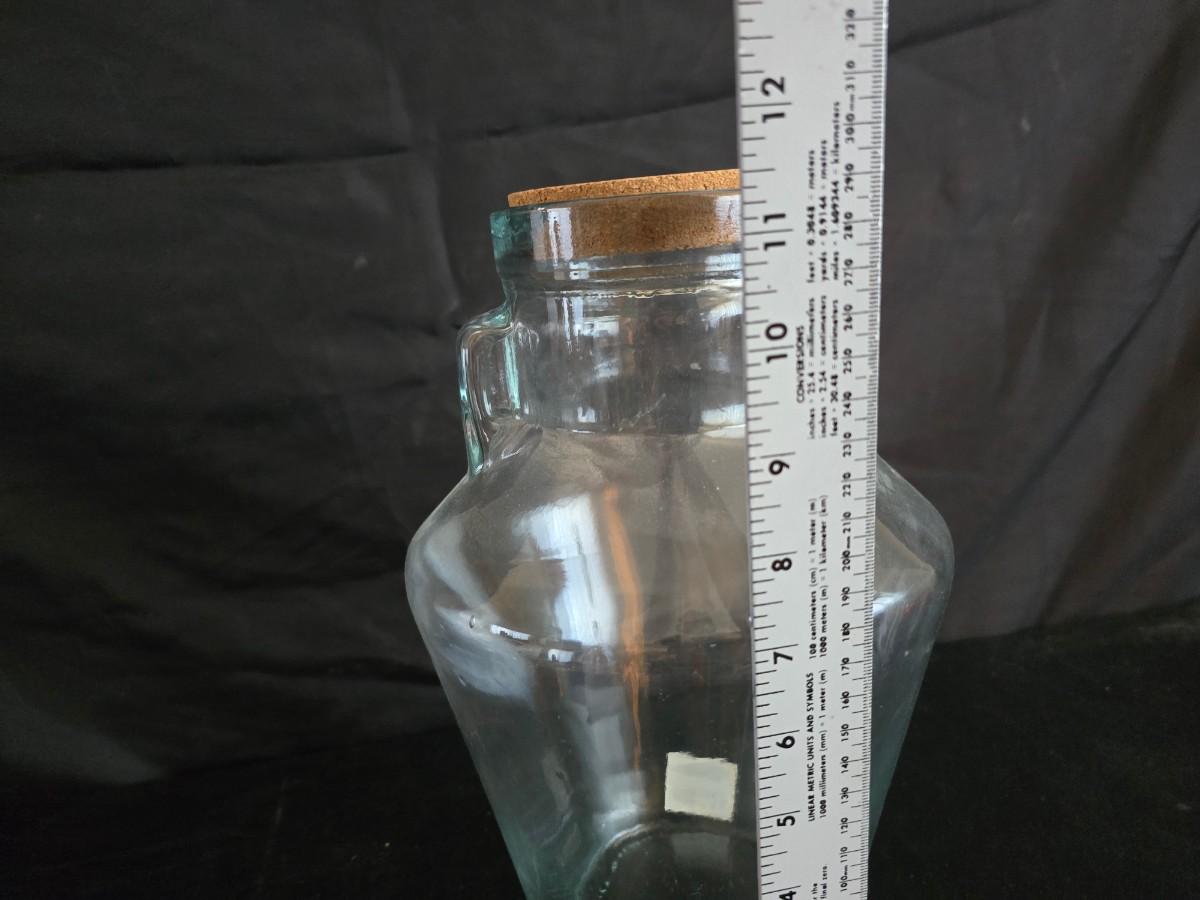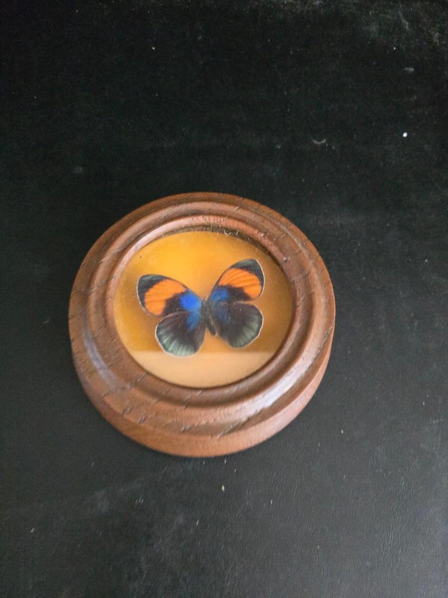 Home decor - large, corked jar - candle holders - and a framed specimen of an Asterope Sapphira butterfly