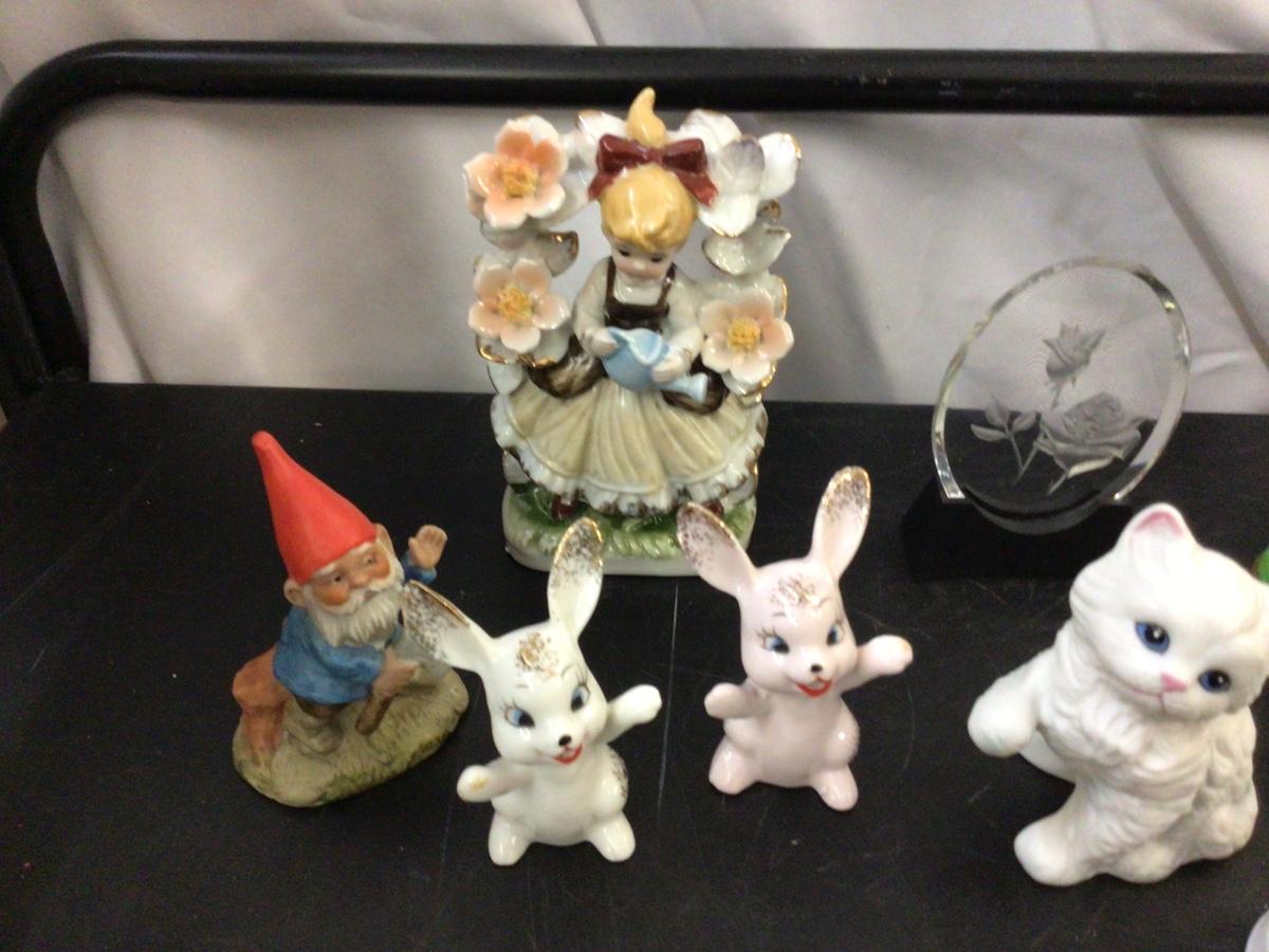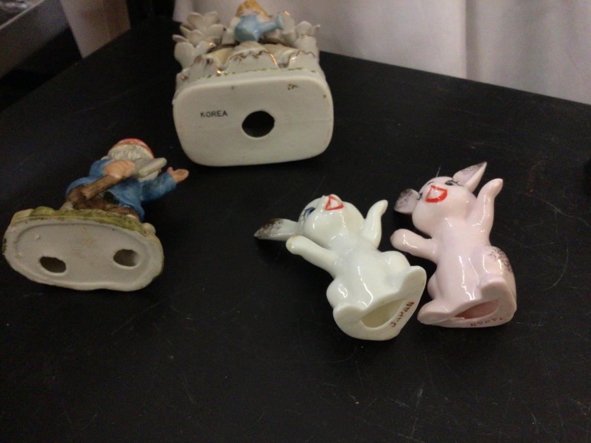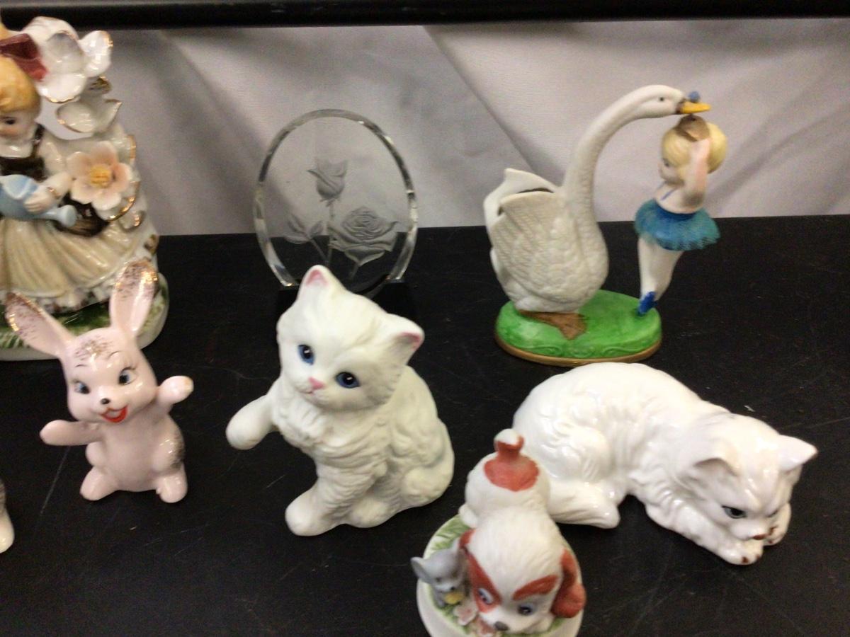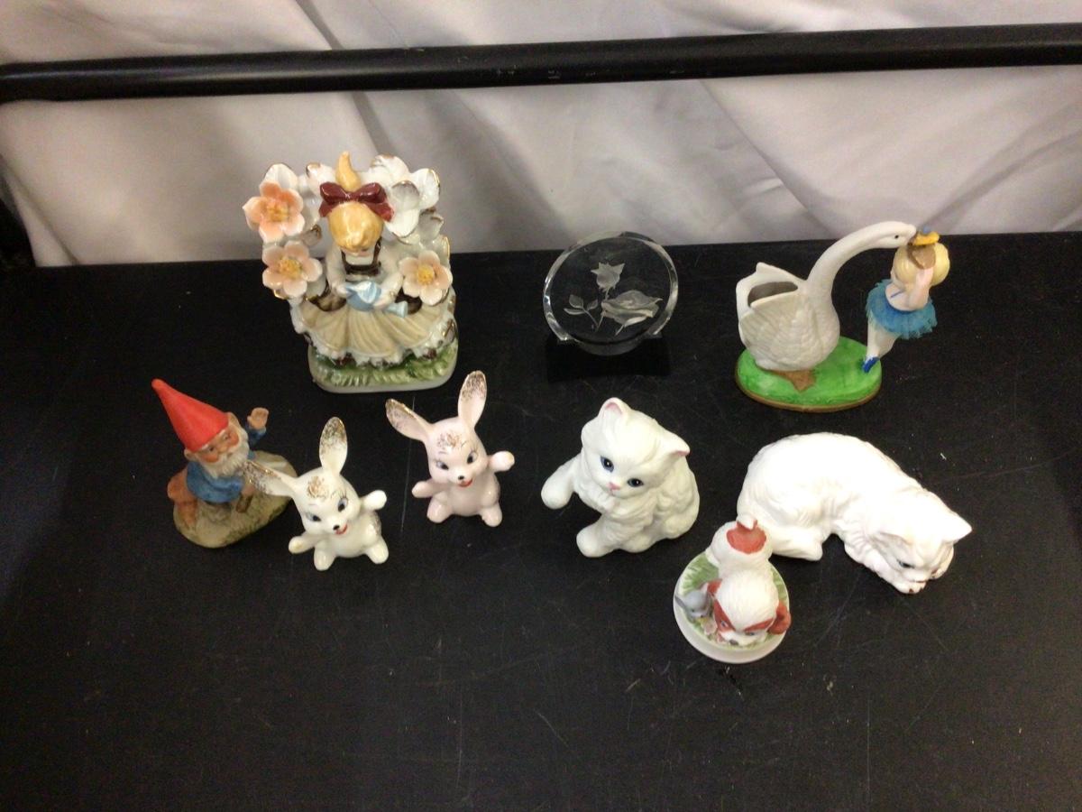 You get some great home decor, the is a ballerina that twirlers with goose, cats, bunny, gnome. There is Japan bunny, Homecoming cat, Bone China cat, gnome, Taiwan dancer, Napco dog, Korea girl.