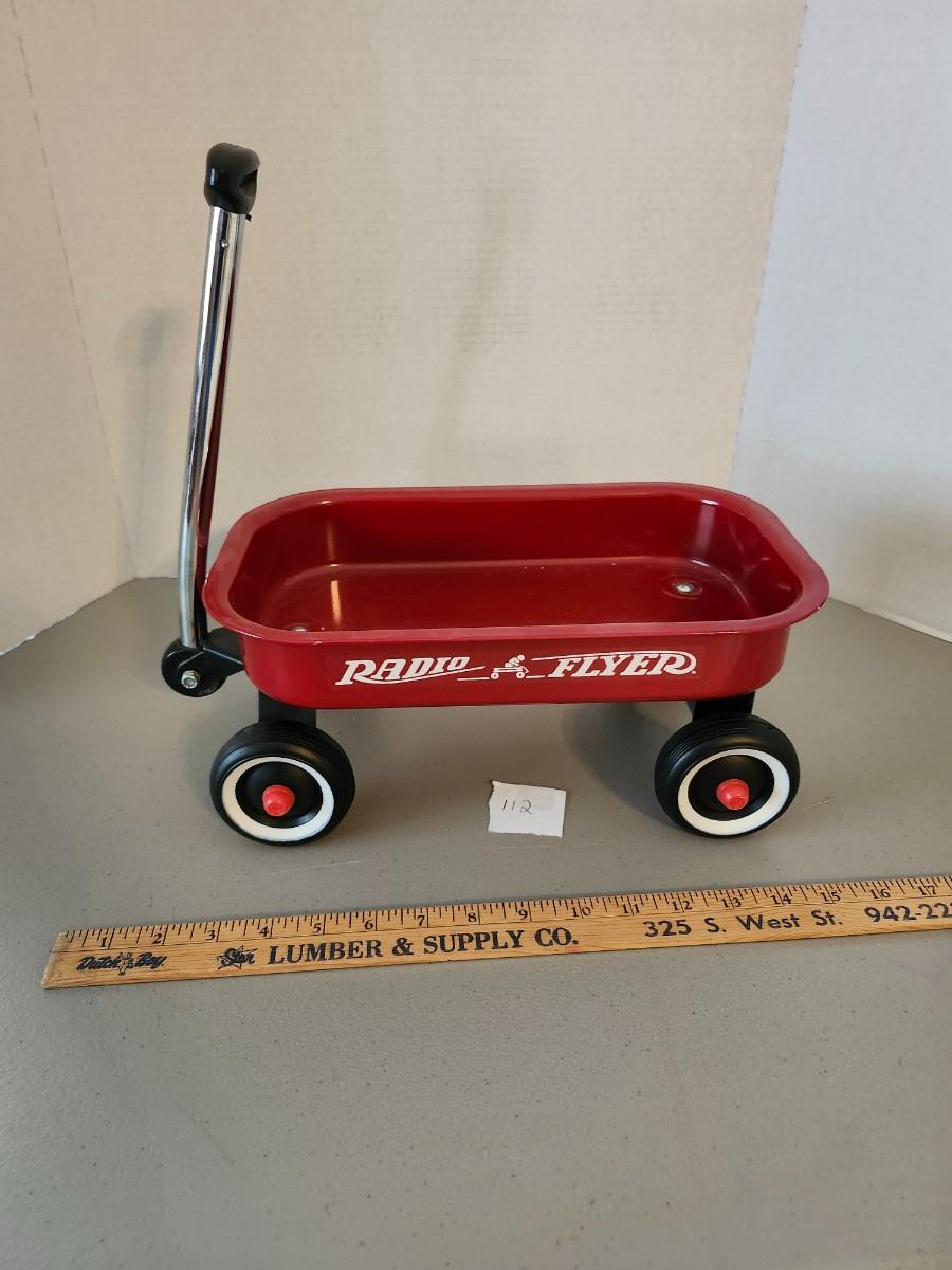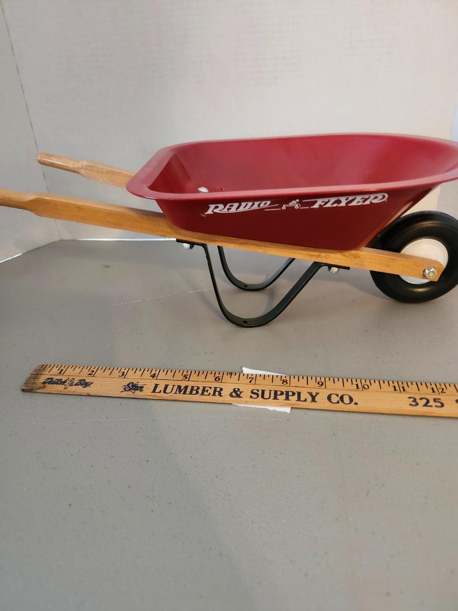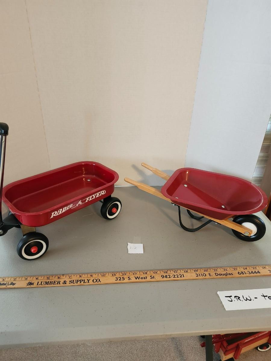 Home Decor mini Red Radio Flyer wagon and wheel barrel