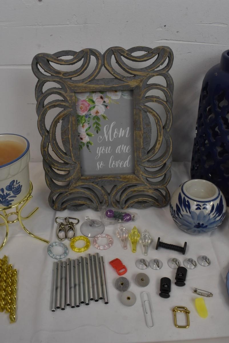 Home Decor: Mugs, Candles, Picture Frame, Disassembled Wind Chimes, Wall Hooks, etc