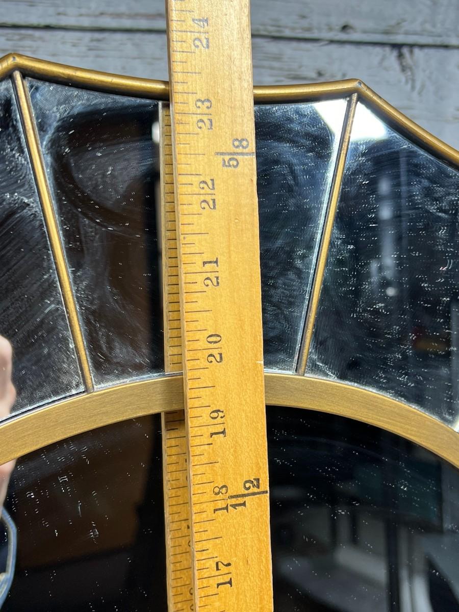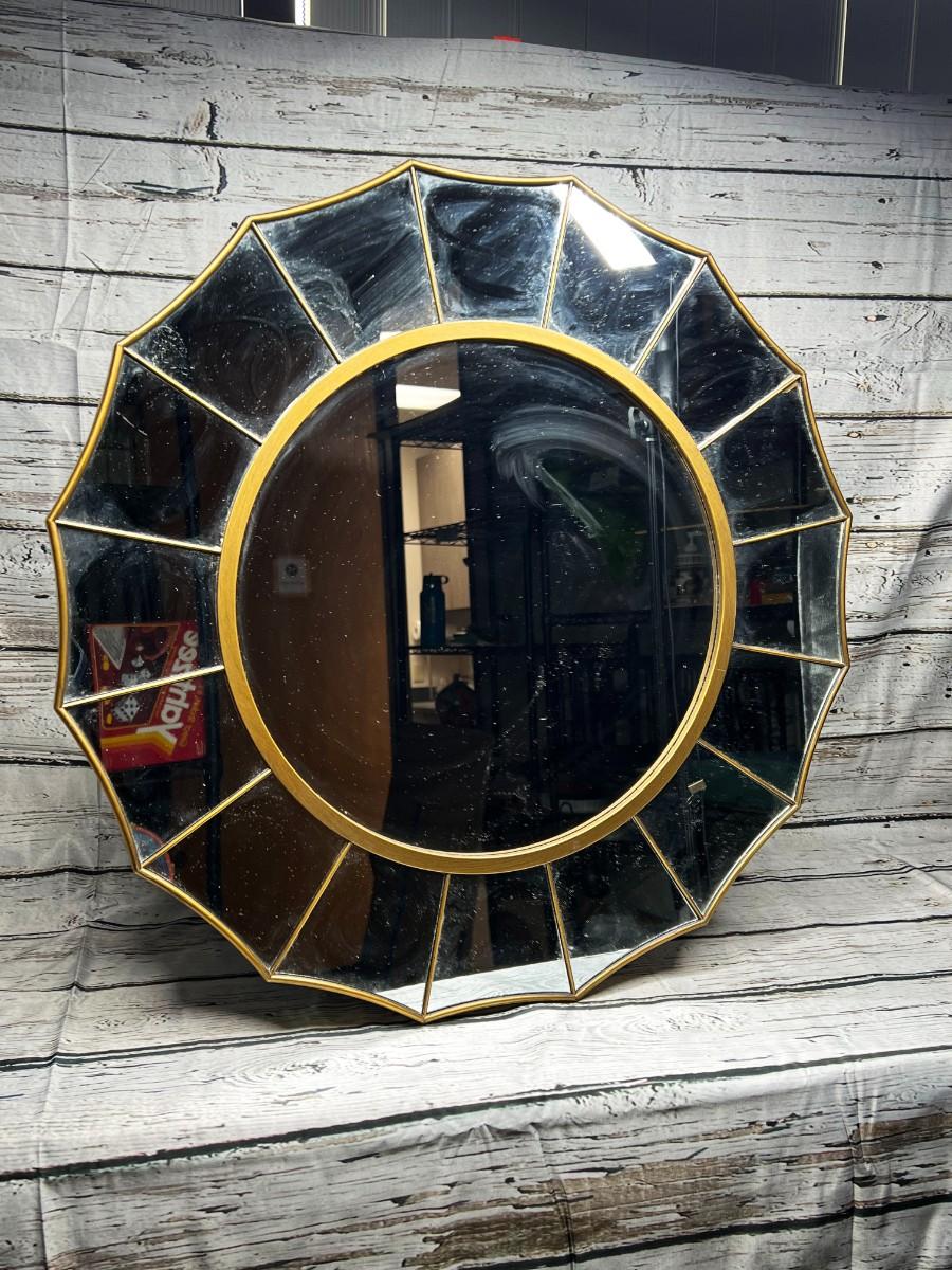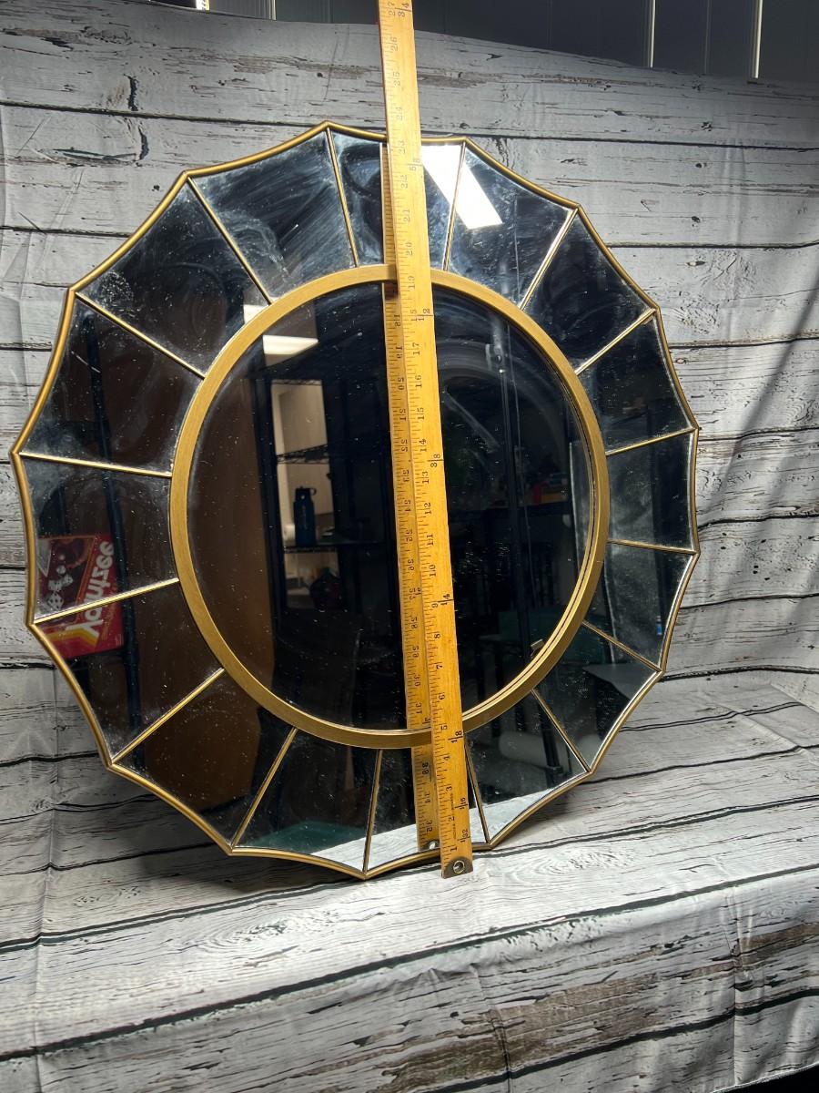 Home Decor Squared Off Round Wall Mirror, there is no significant damage or cracks to the mirror and is in good displayable condition. Check pictures for more details and for sizing.