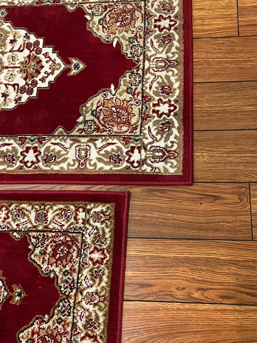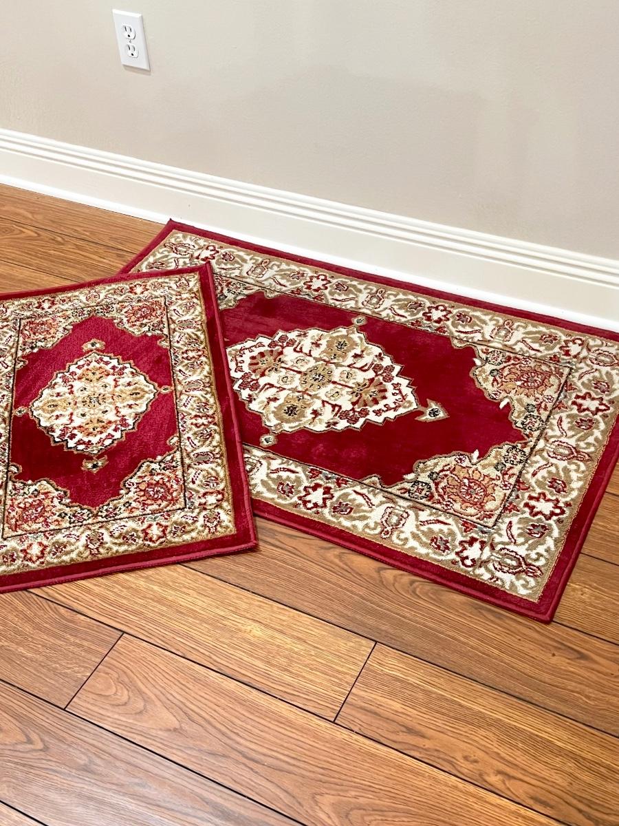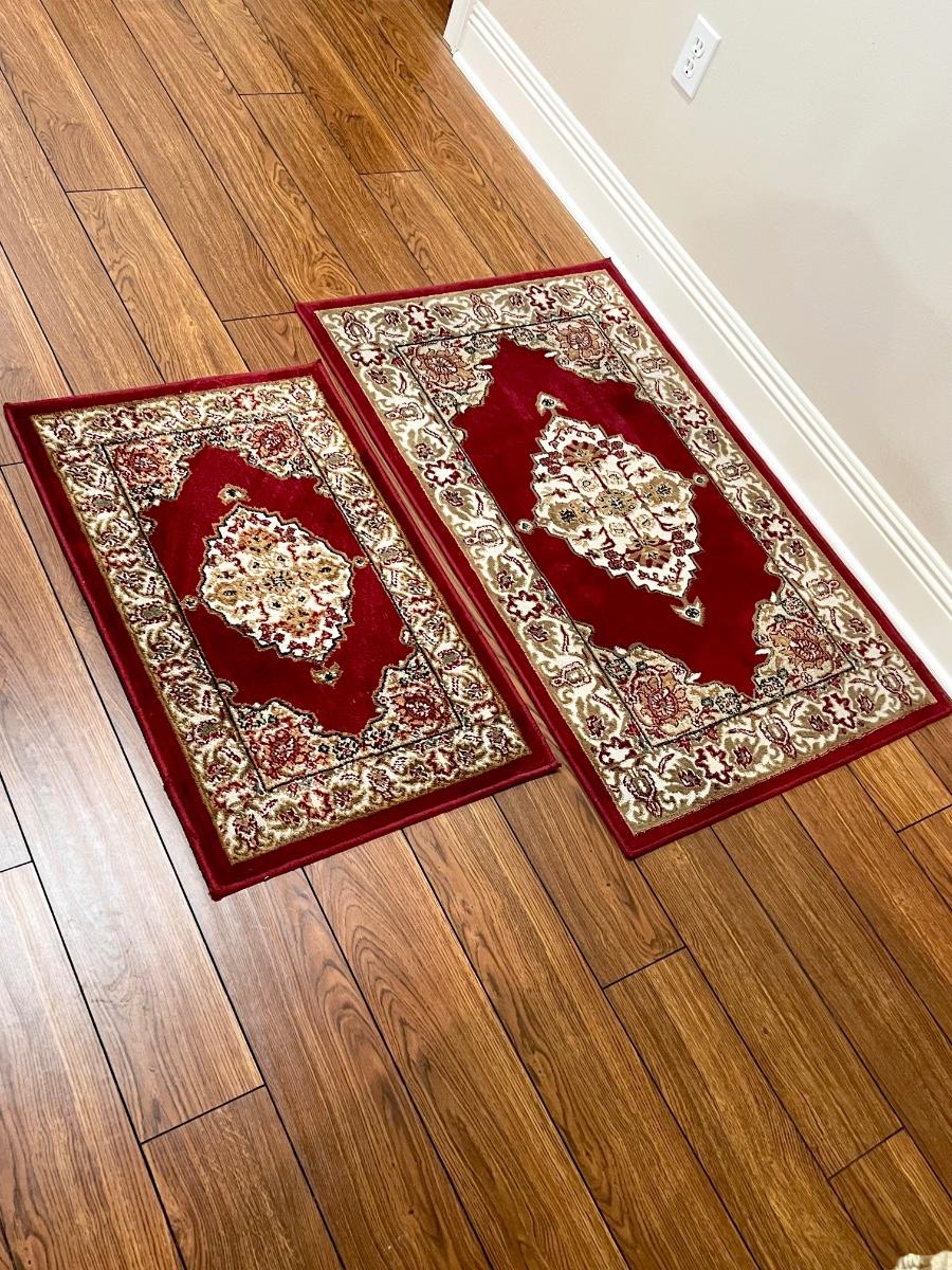 Has been sanitized, deodorized, & disinfected ~ Bigger rug = 43” W x 27” ~ Smaller = 32” x 20”