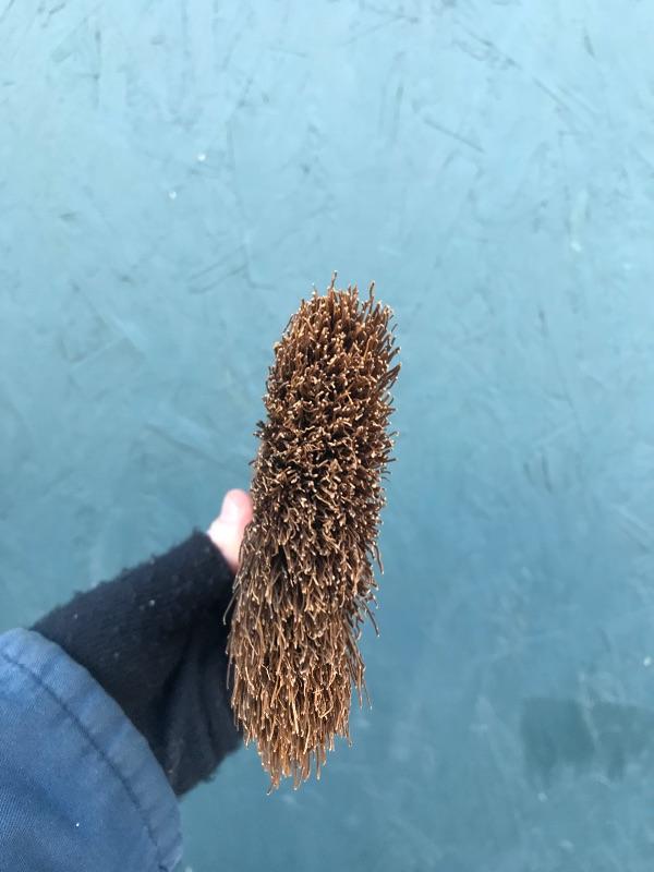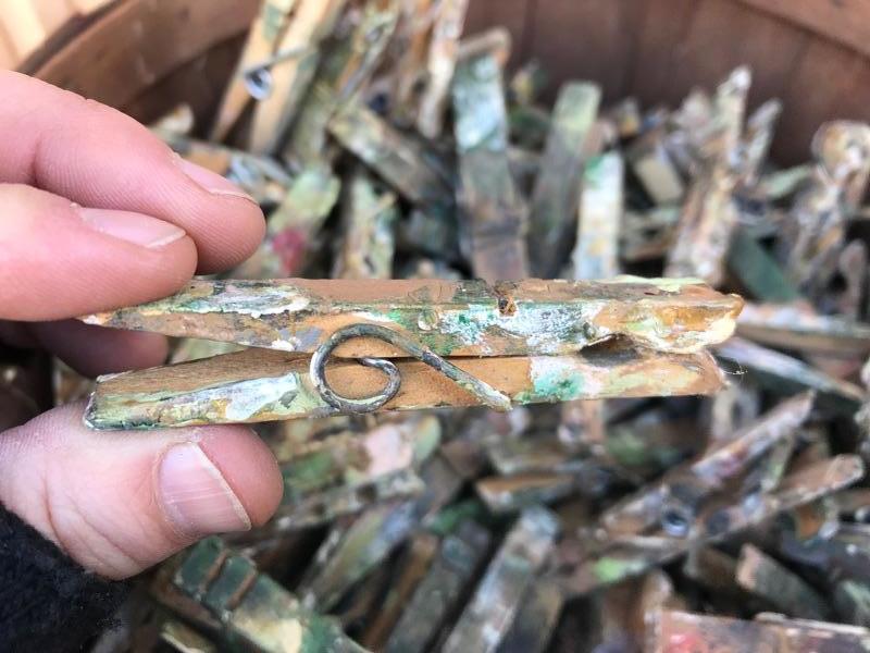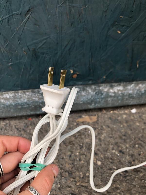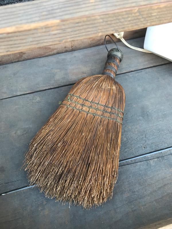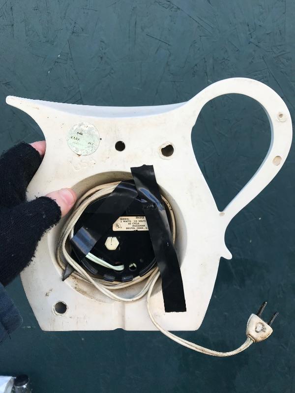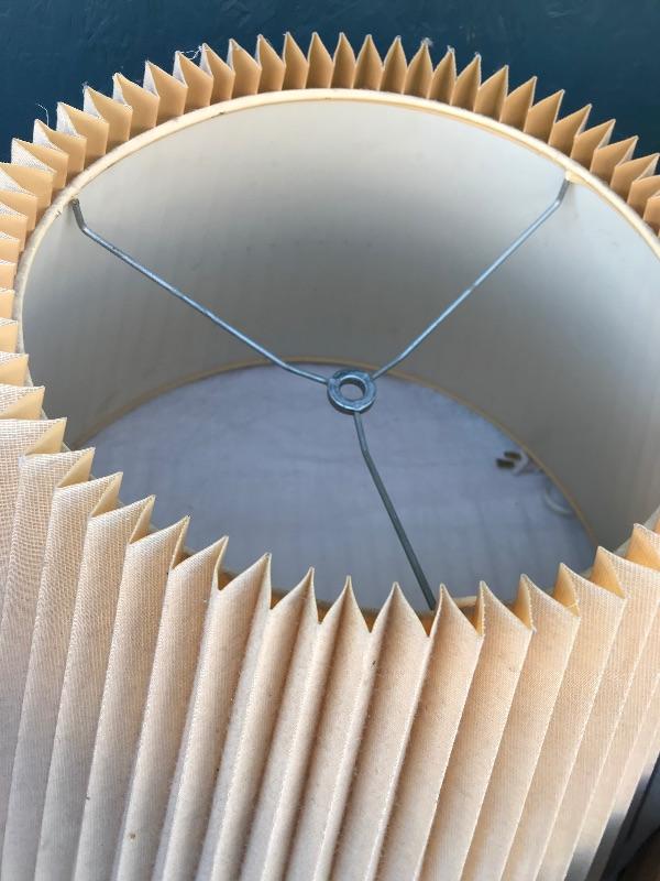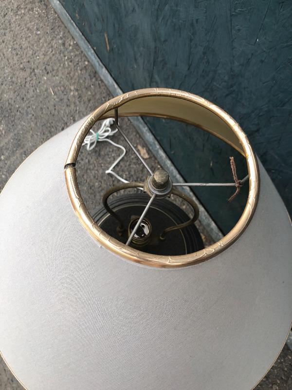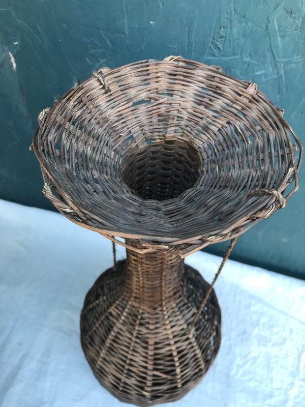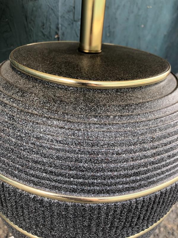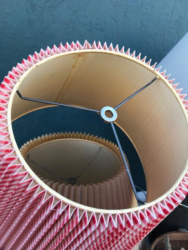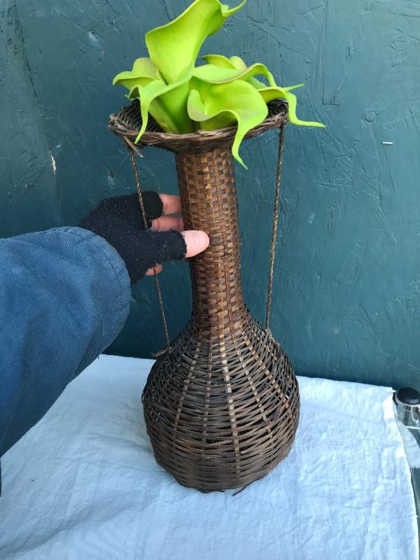 Grey lamp is 29.5" H. It is in great condition! The basket of clothes pins were used by an artist to hold their canvases and are now covered in a very cool finish of layered paint. Mid century ceramic pitcher clock is so cute! Wicker vase is 15"H.