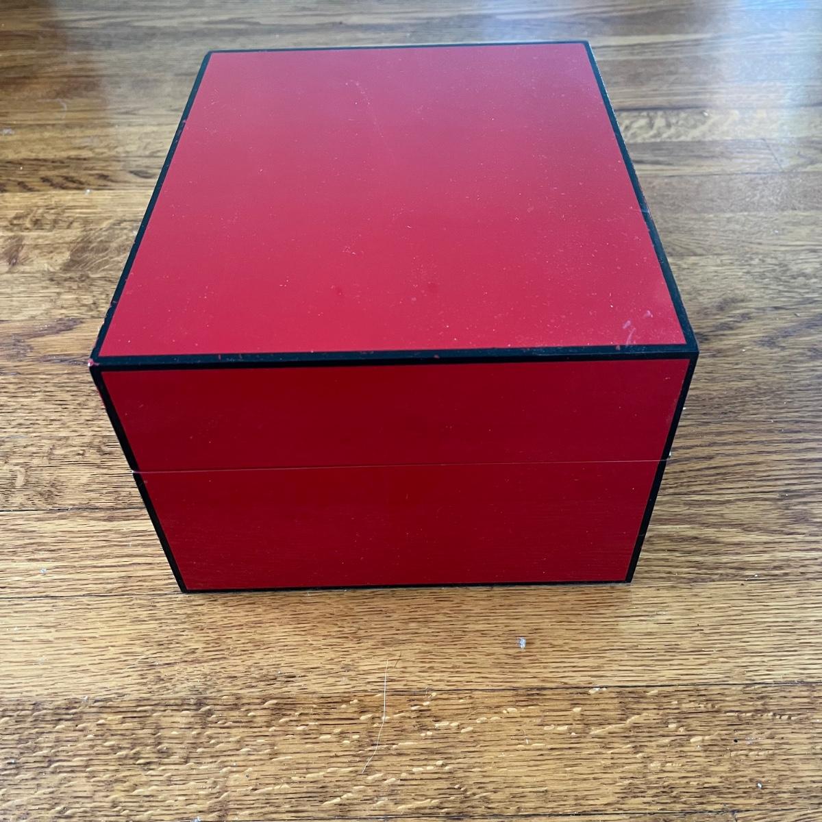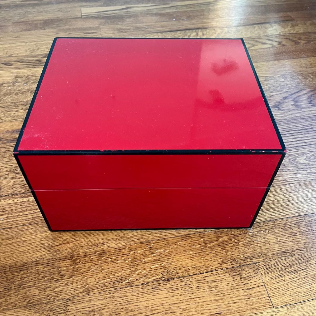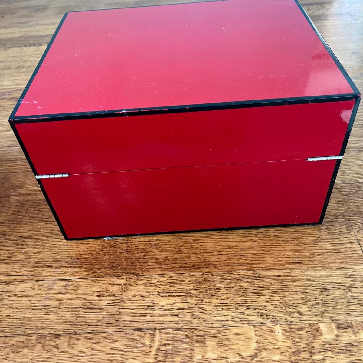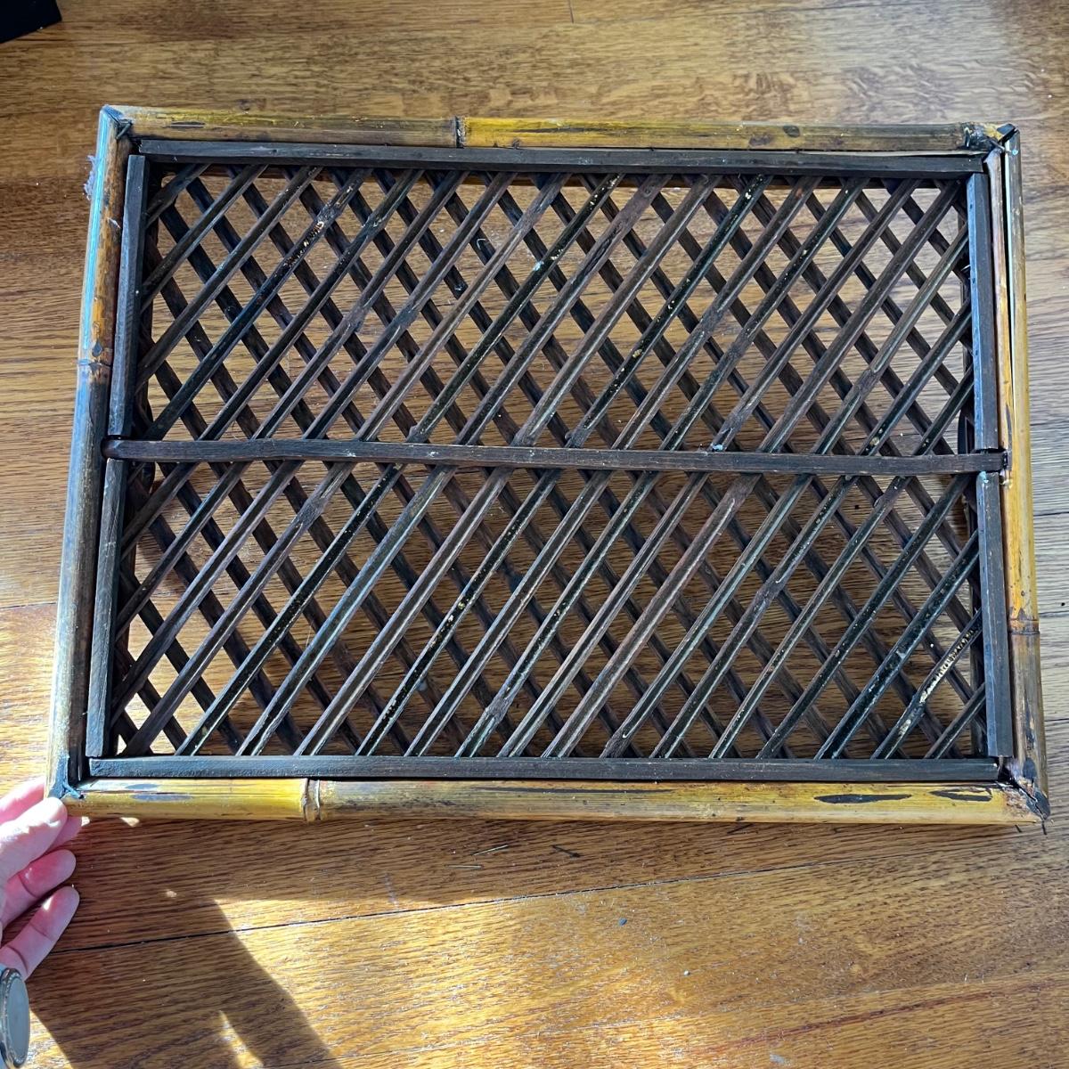 Collection of five Asian themed home decor items. One handled bamboo tray (measuring 14” x 19”), a black resin Buddha, gold paisley ceramic orbs in the original box and two decorative resin boxes (both measuring approx 14” x 18”). Shipping available.