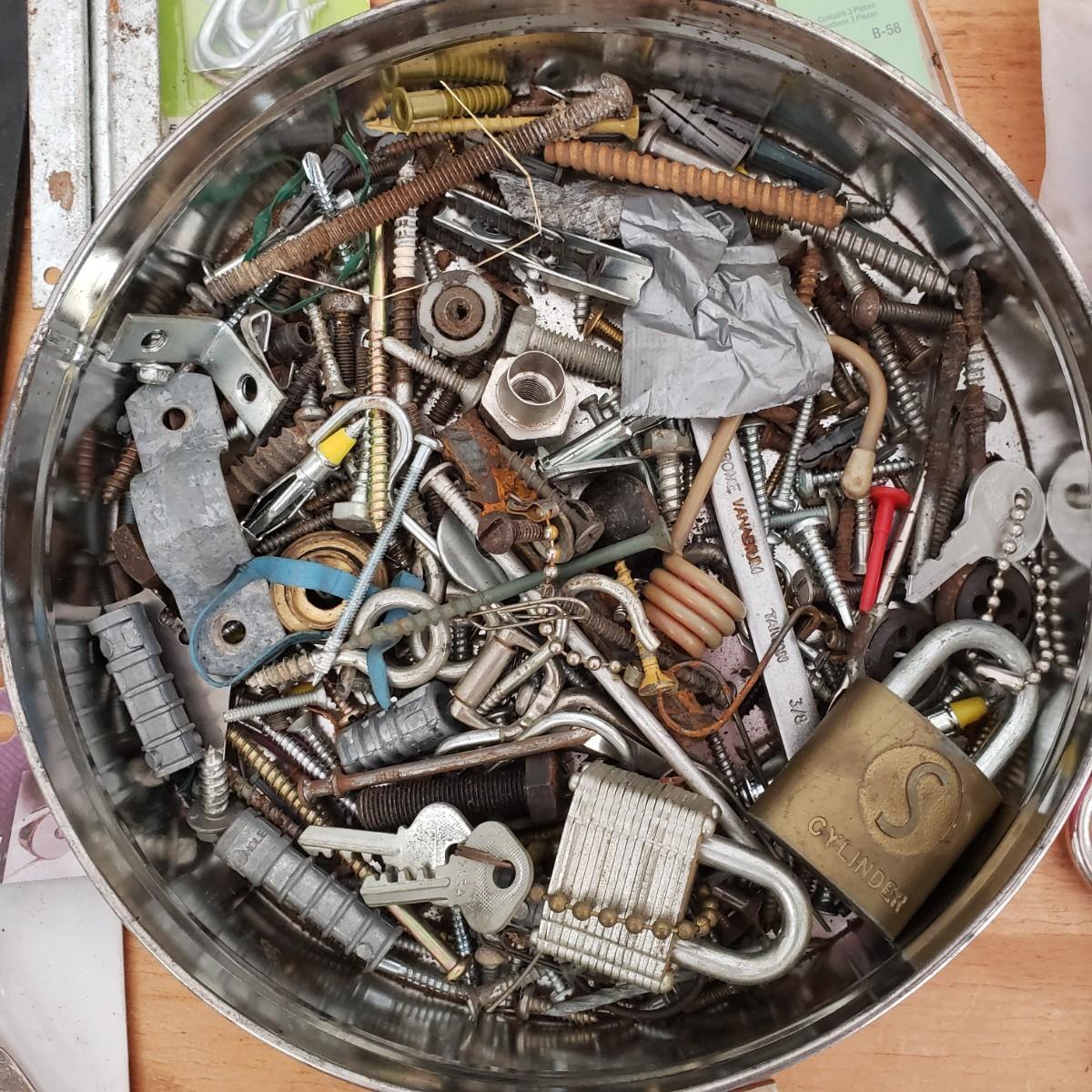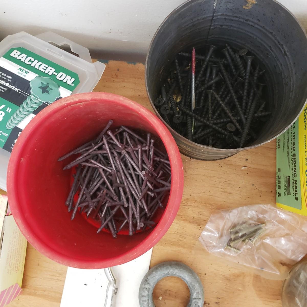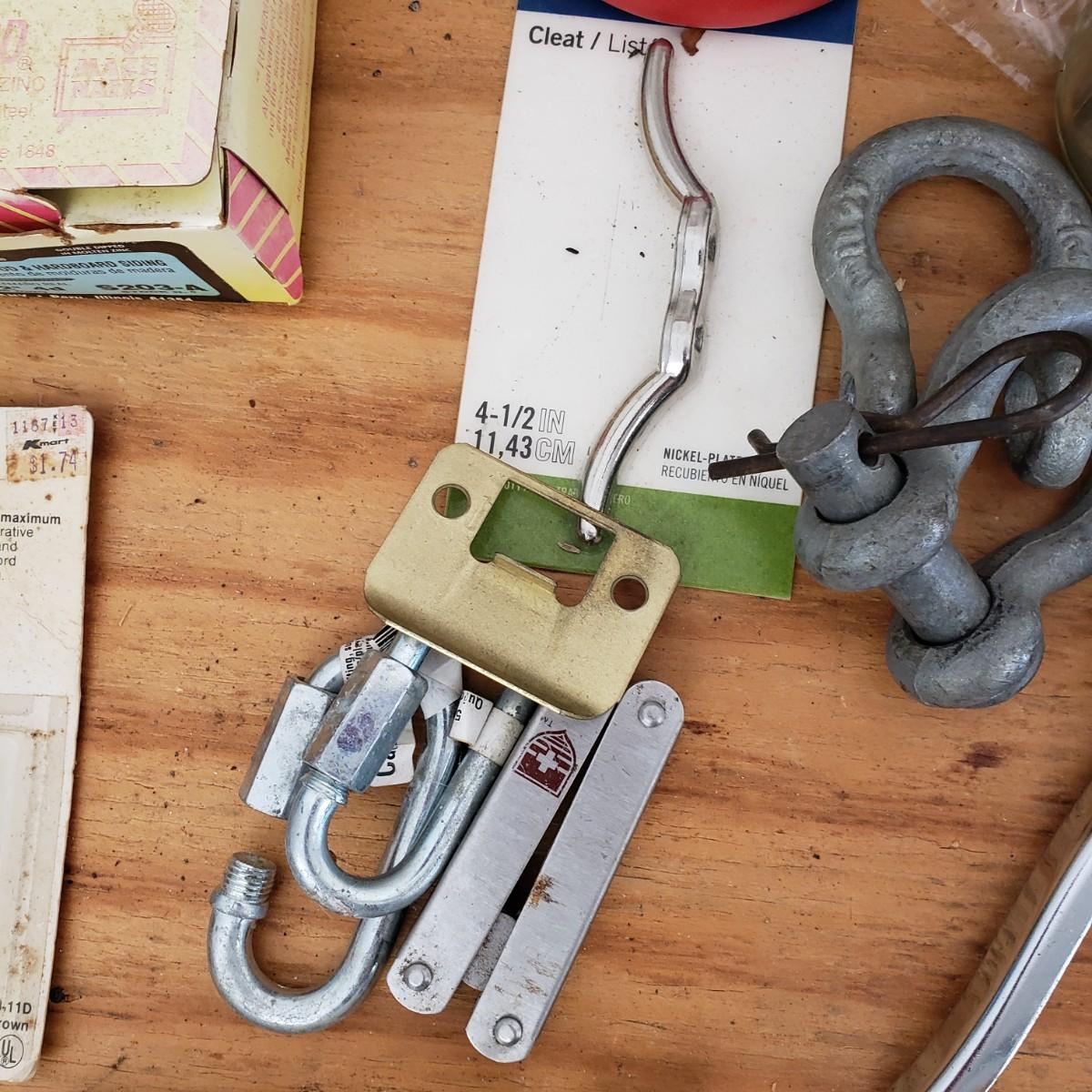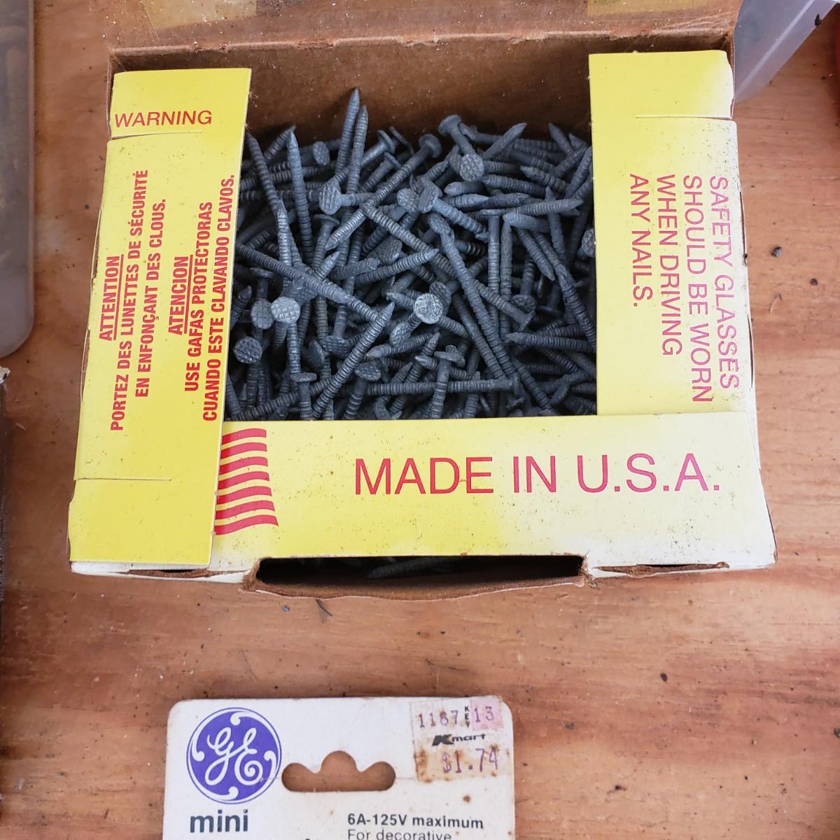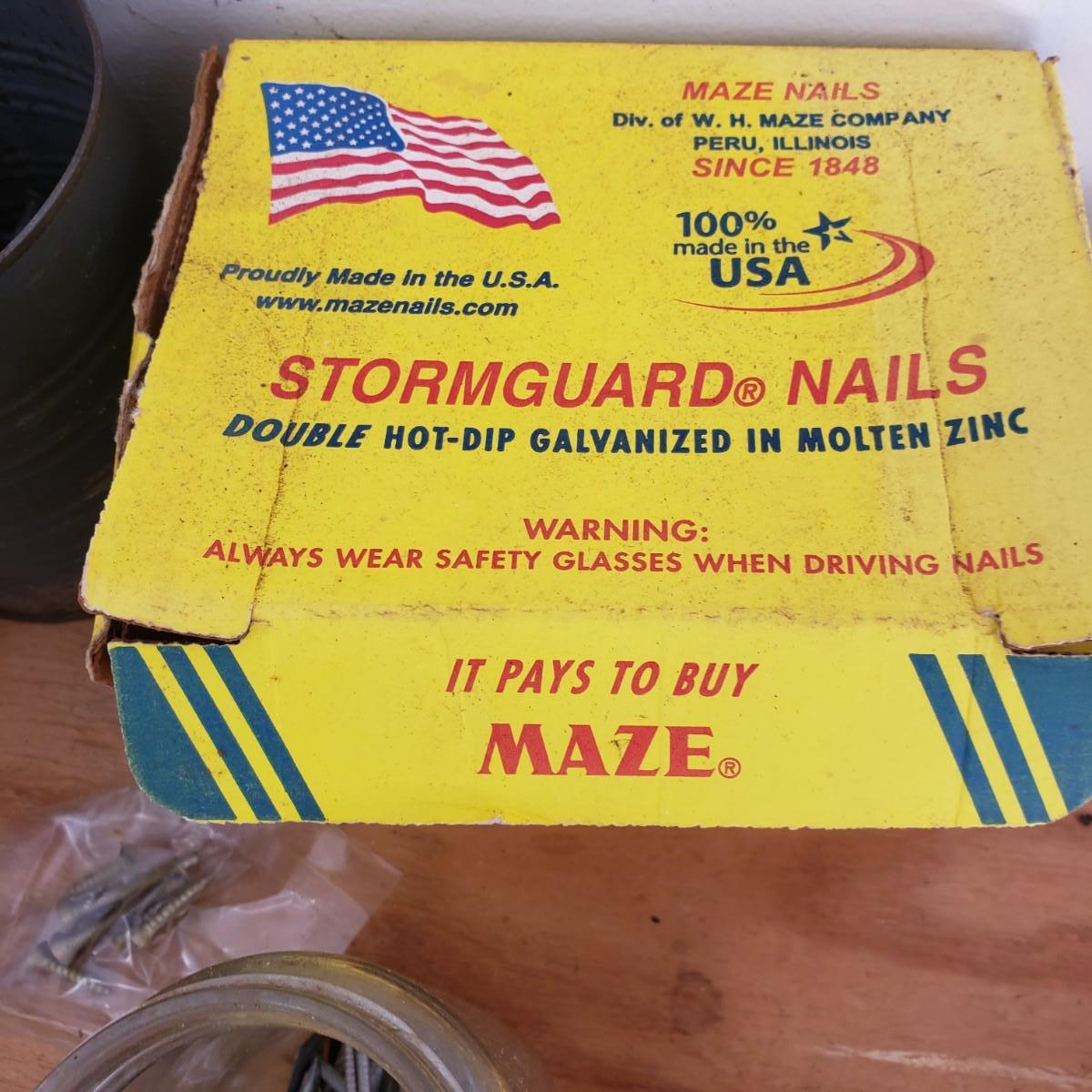 This lot has several pieces of home hardware including nails, screws and three staple guns with staples. There is an Exacto knife kit in a box and painting supplies. New in the box Husky plastic sheeting, see picture for details. Also included is a small blue tarp and a roll of thin clear plastic sheeting. Finally, a large box of thick plastic sheeting, see pictures for details.