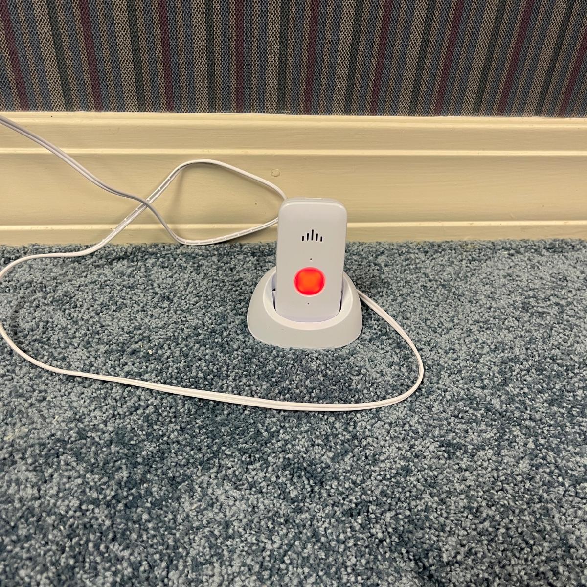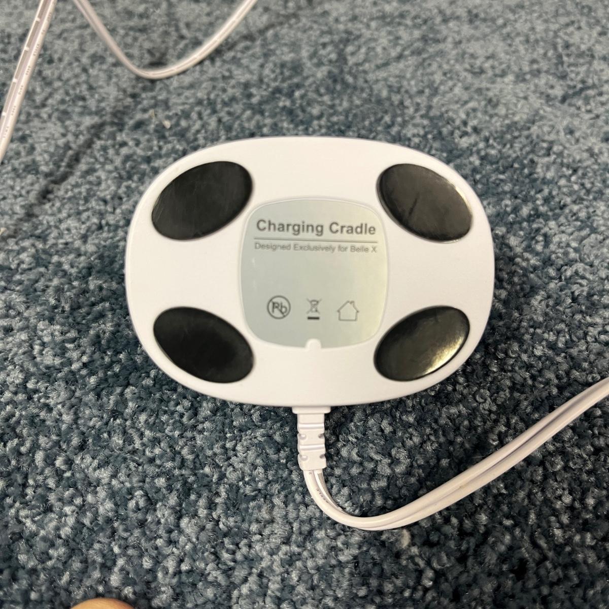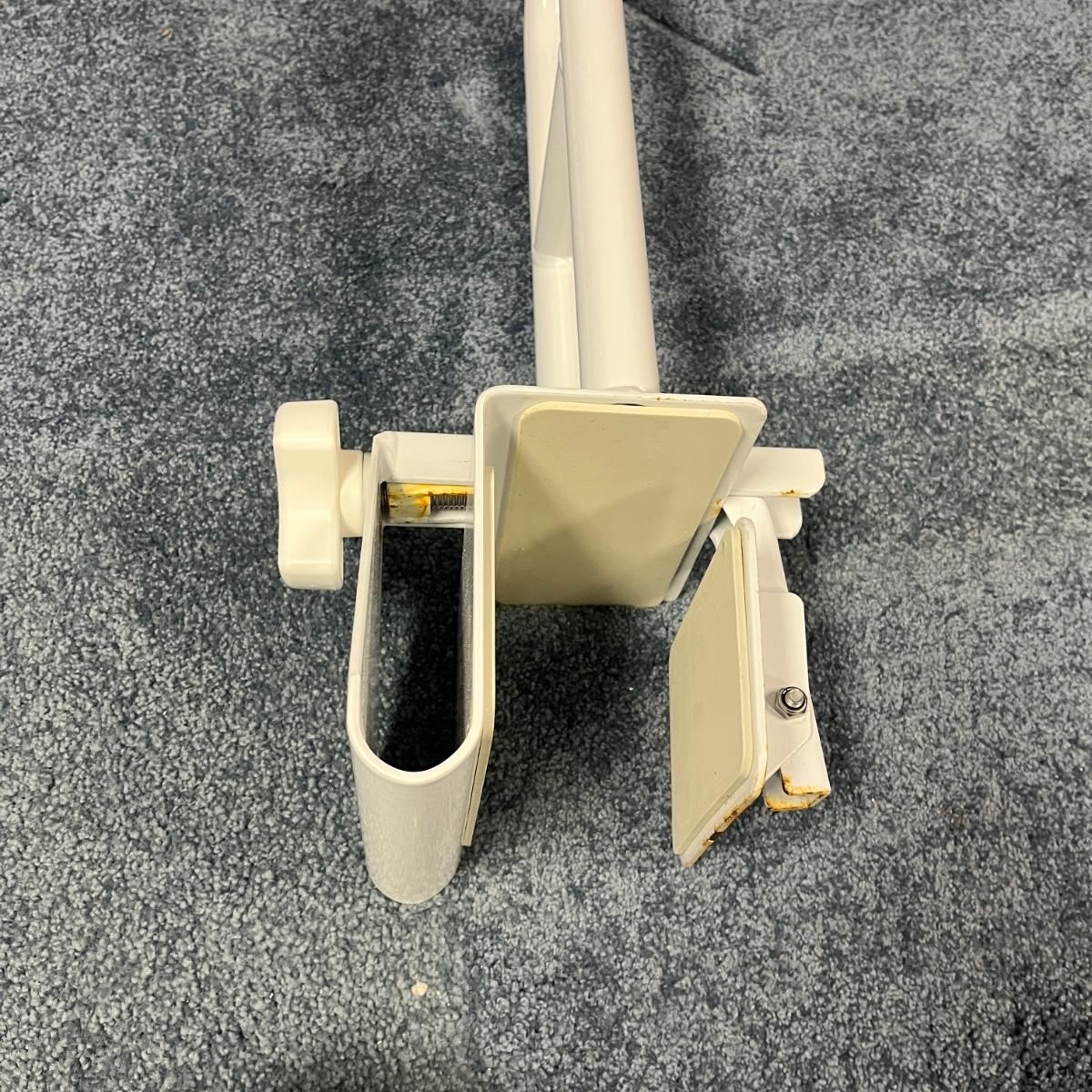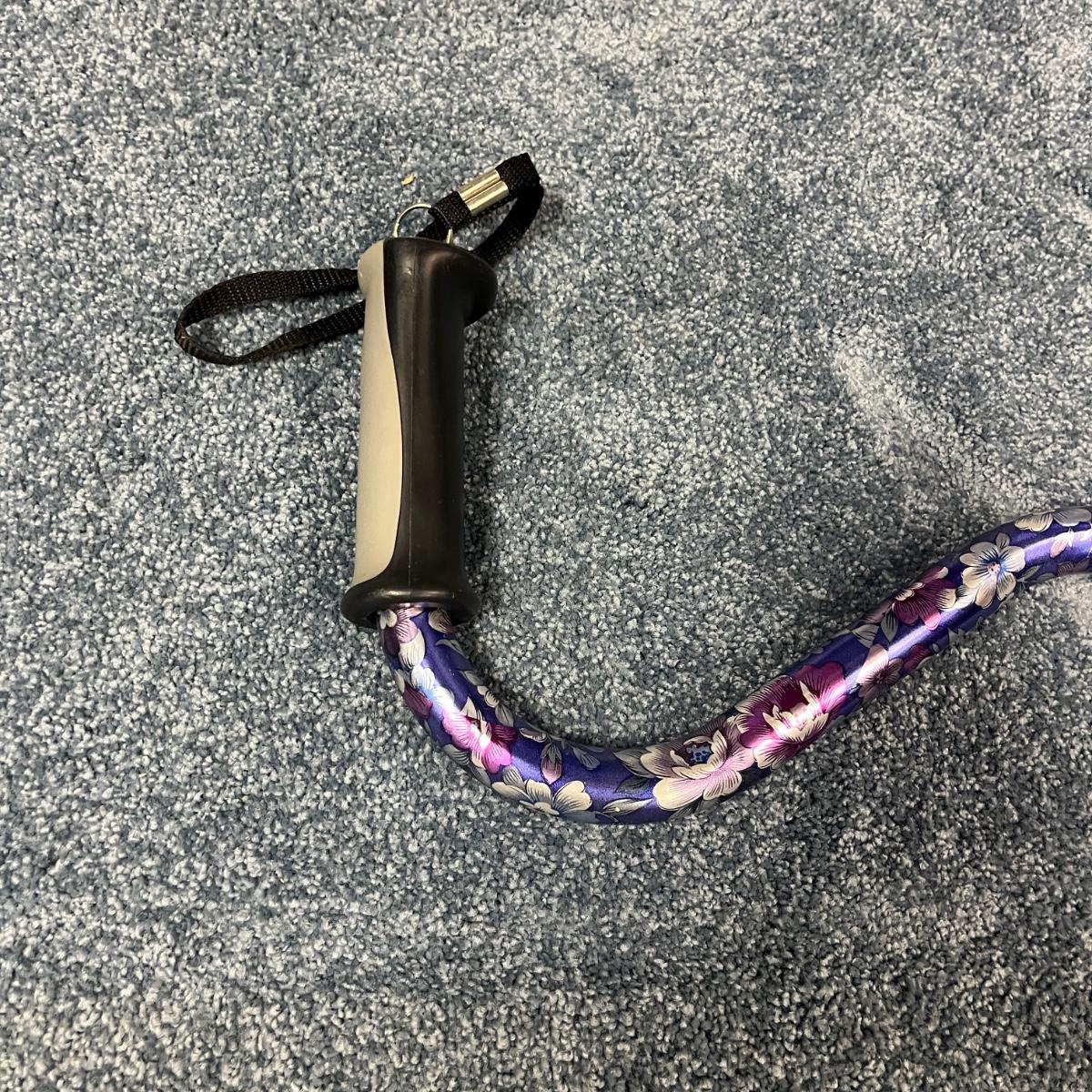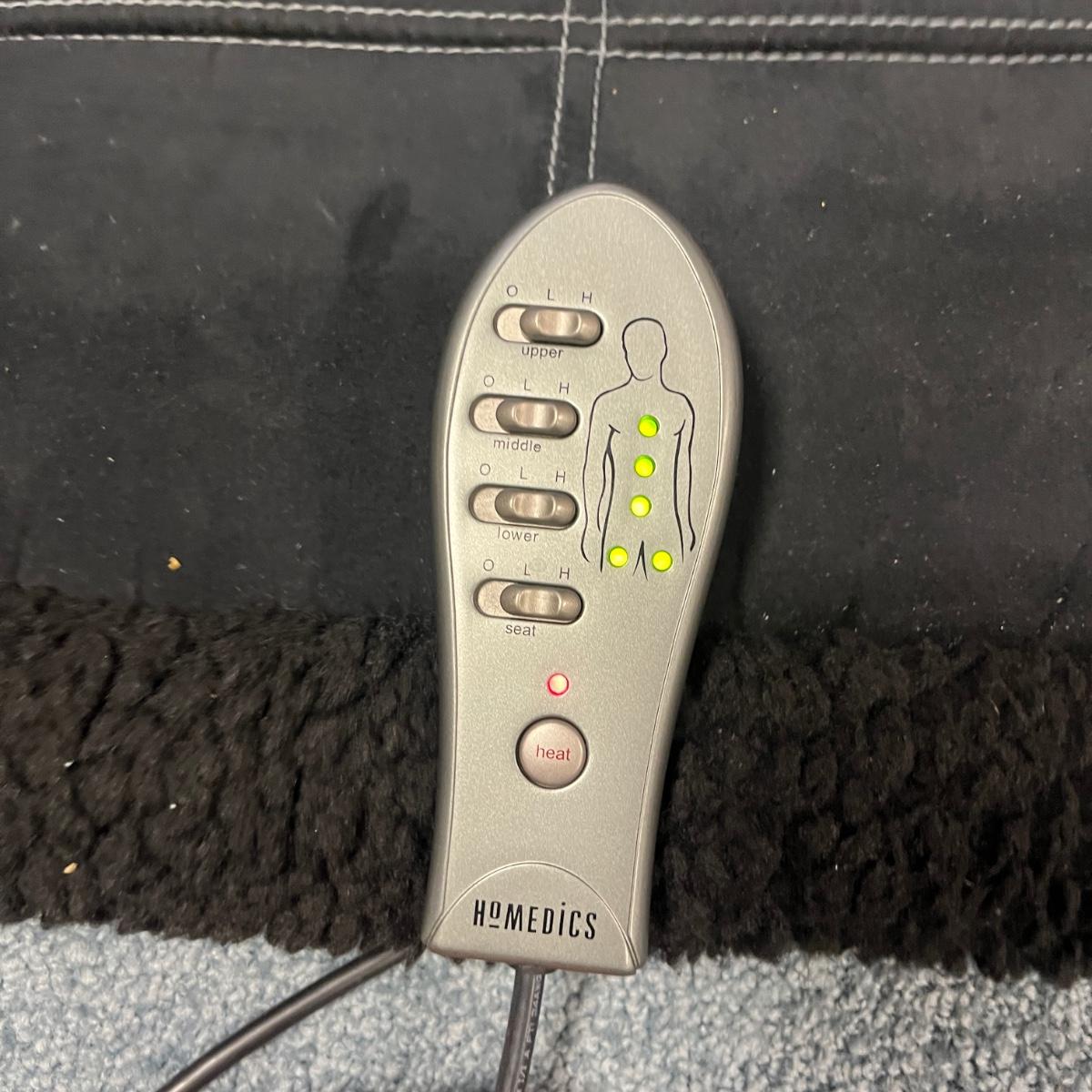 Lot includes five suction cup handles, Homedics vibrating and heated chair cover, metal cane, Drive bed brace, thermometer, emergency flashlight and two pulse oximeters. All electrical items powered on when plugged in. One pulse oximeter appears to need batteries. Bed brace measures 8” x 6” x 20”H.
