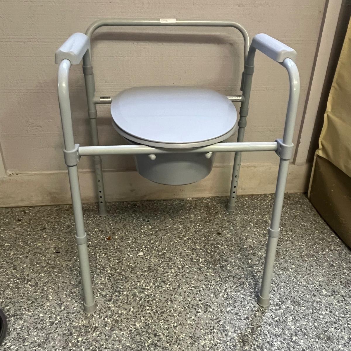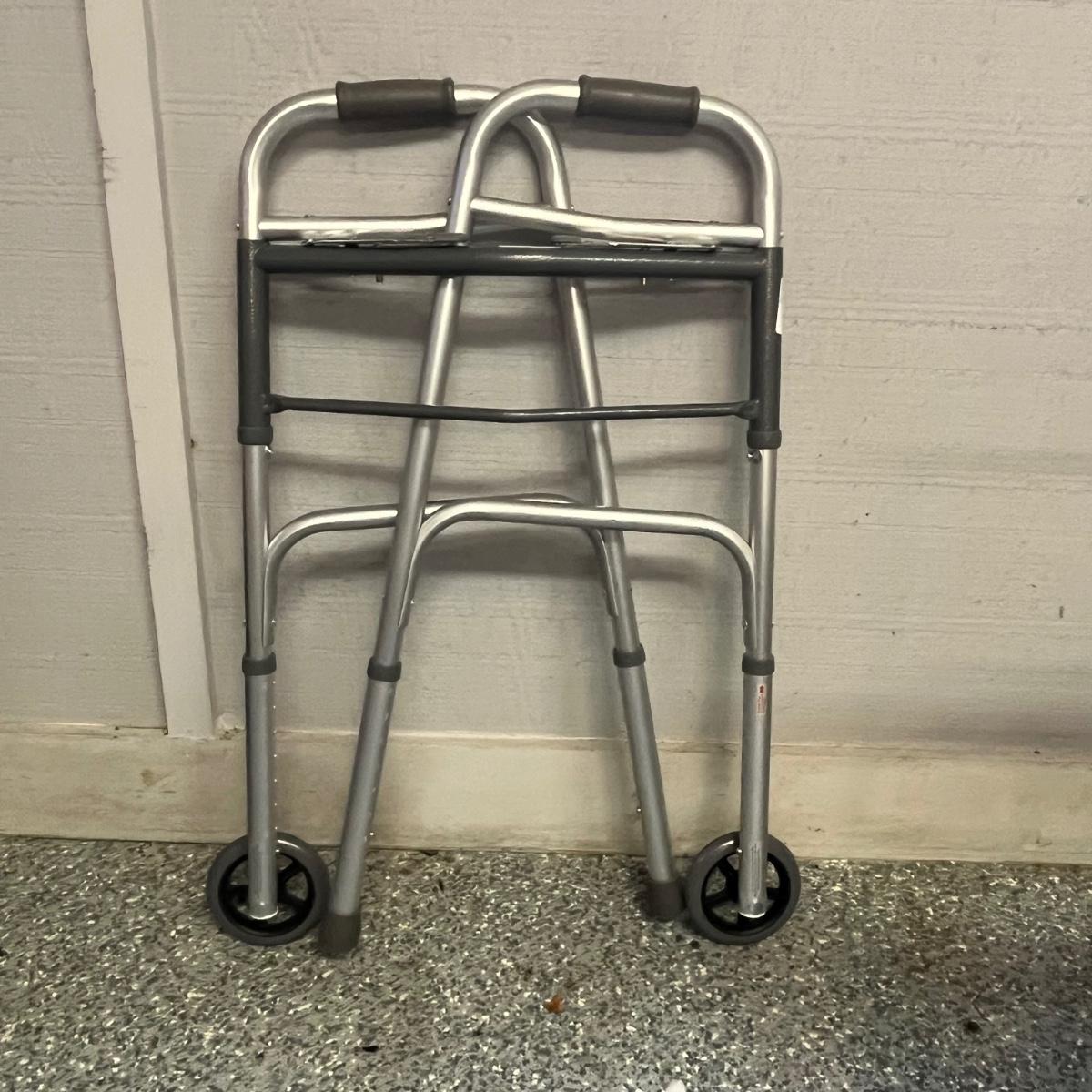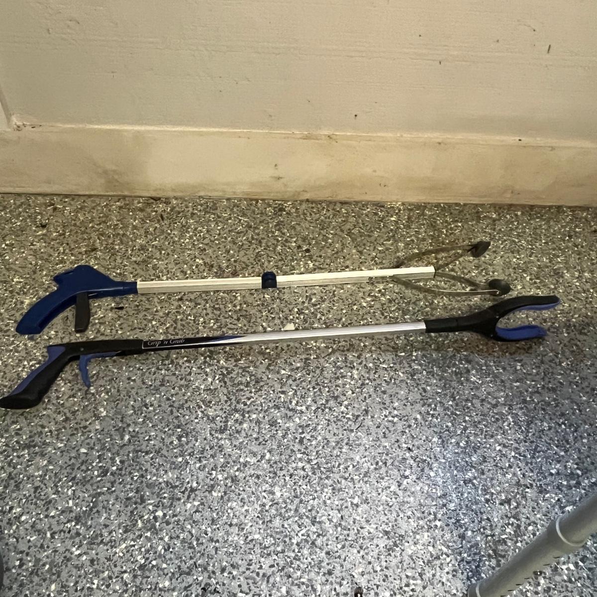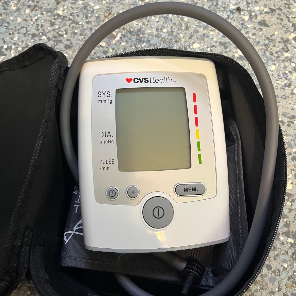Lot includes a maniquick foot massager that powered on when plugged in. Also includes aluminum walker, CVS health blood pressure monitor that appears to need new batteries, Sole warmers, two grabbers and more.