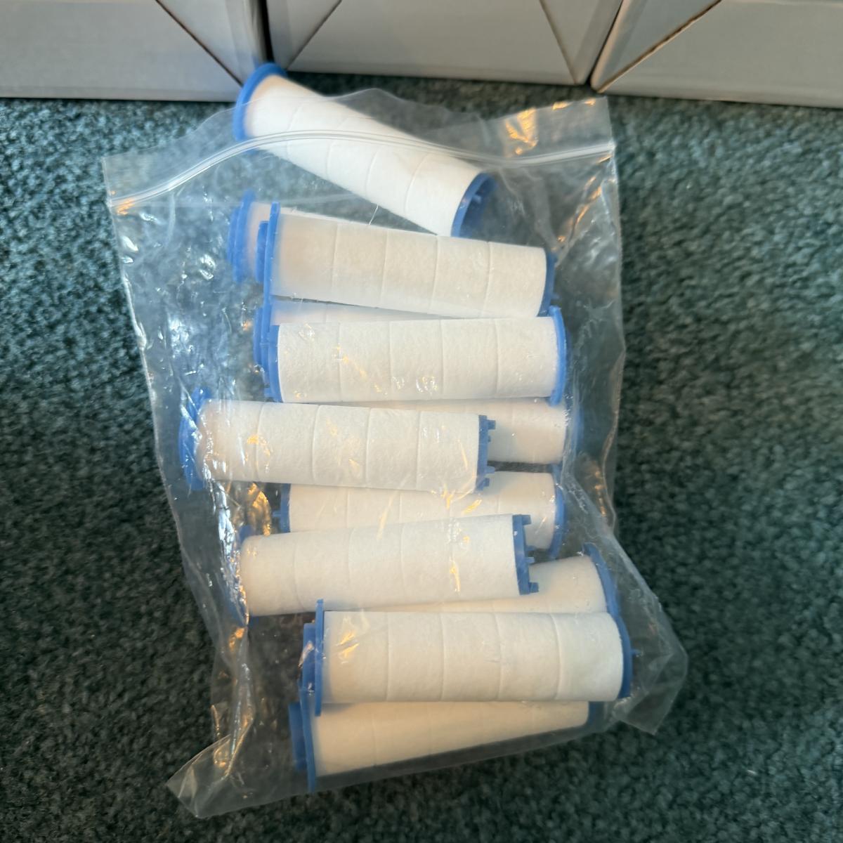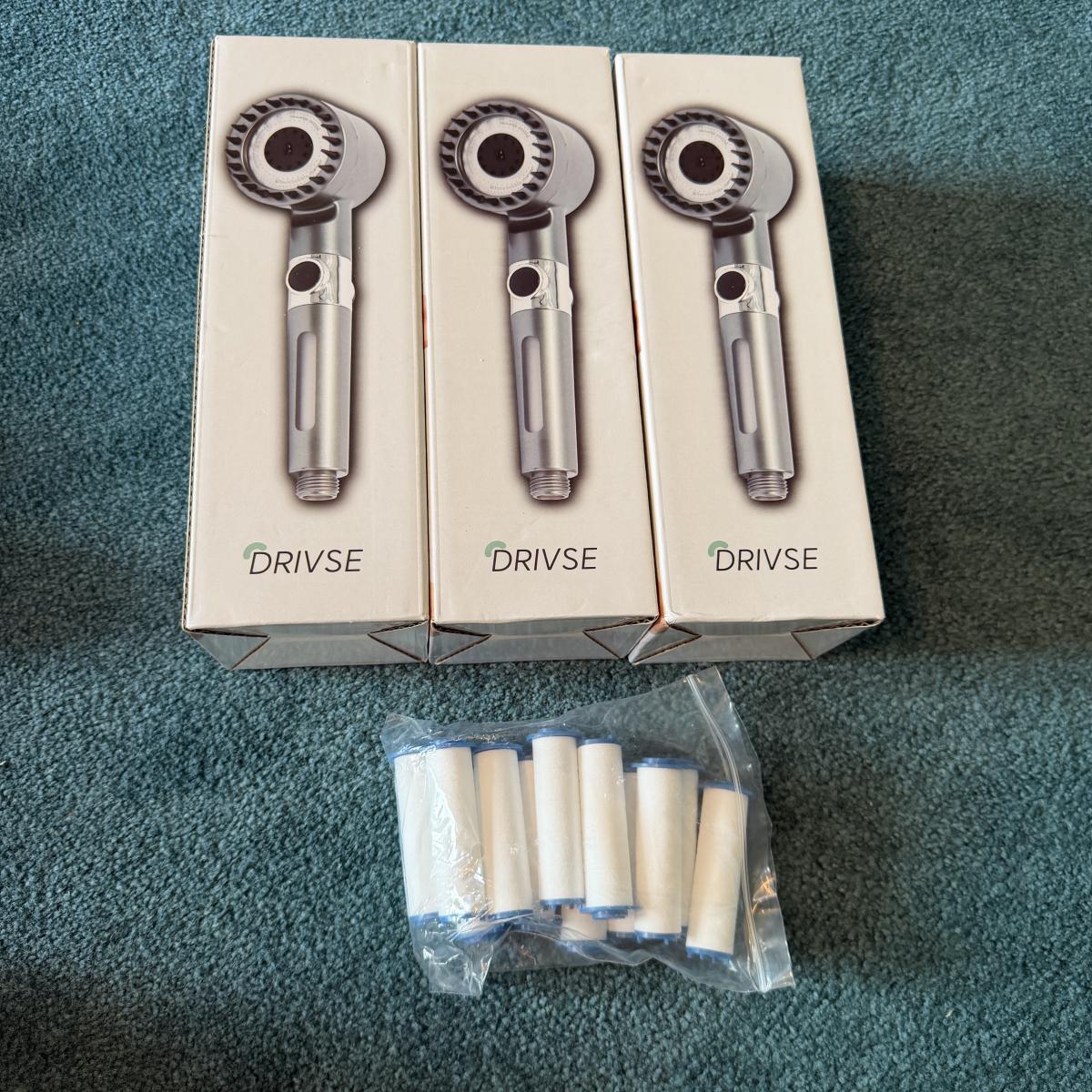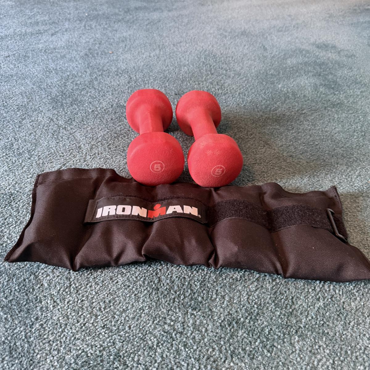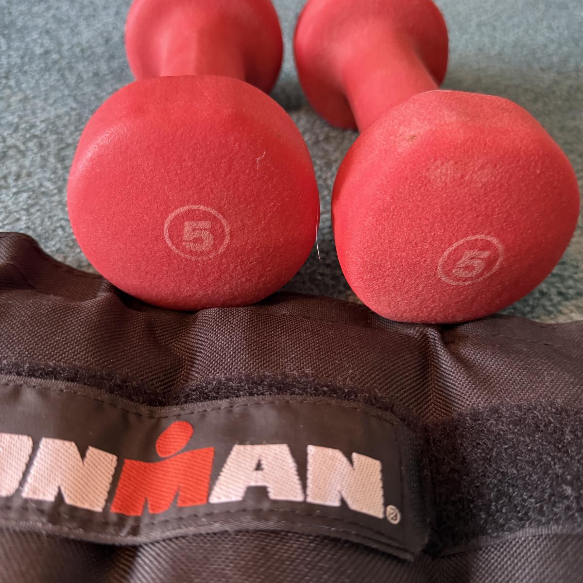 This home health collection includes Walker, shower chair, three NIB shower heads with water filters, two 5 pound dumbbells, ankle brace and weight, back brace, grab handle and an aluminum cane. Walker measures 23” x 19” x 39”H.