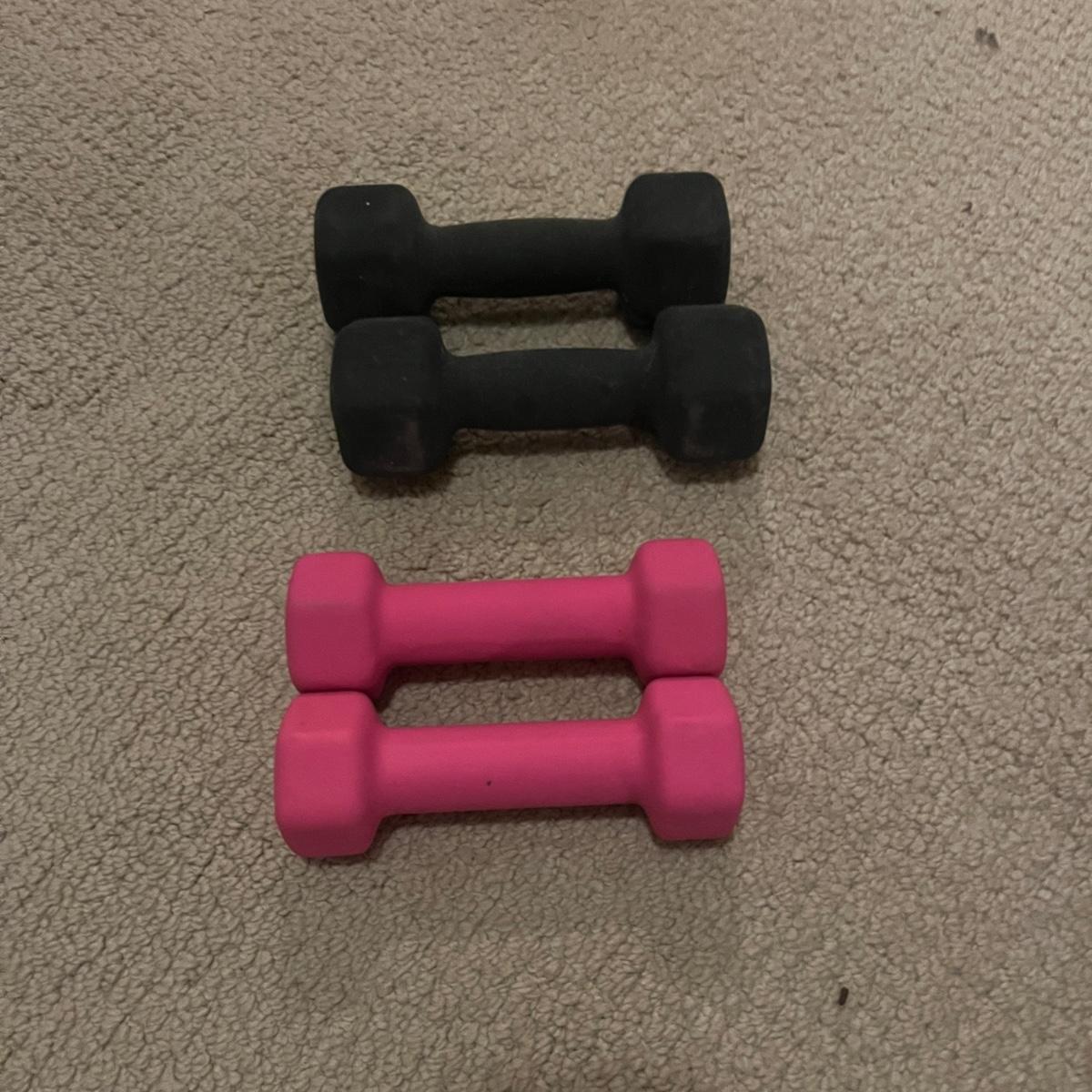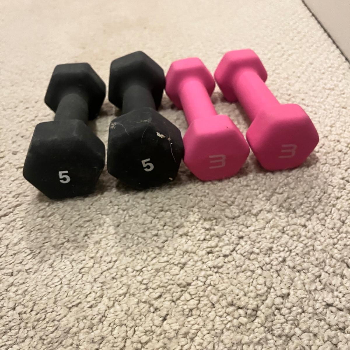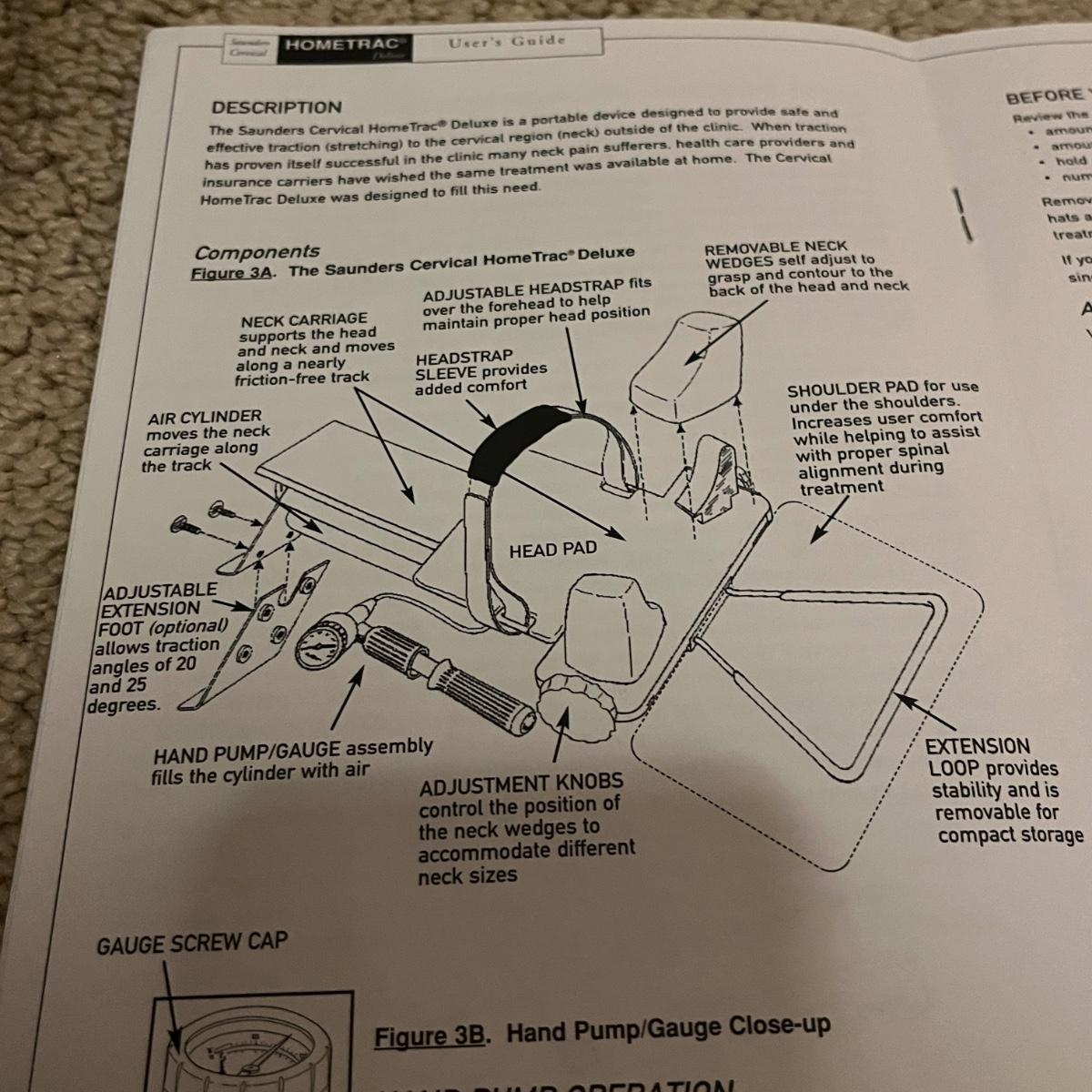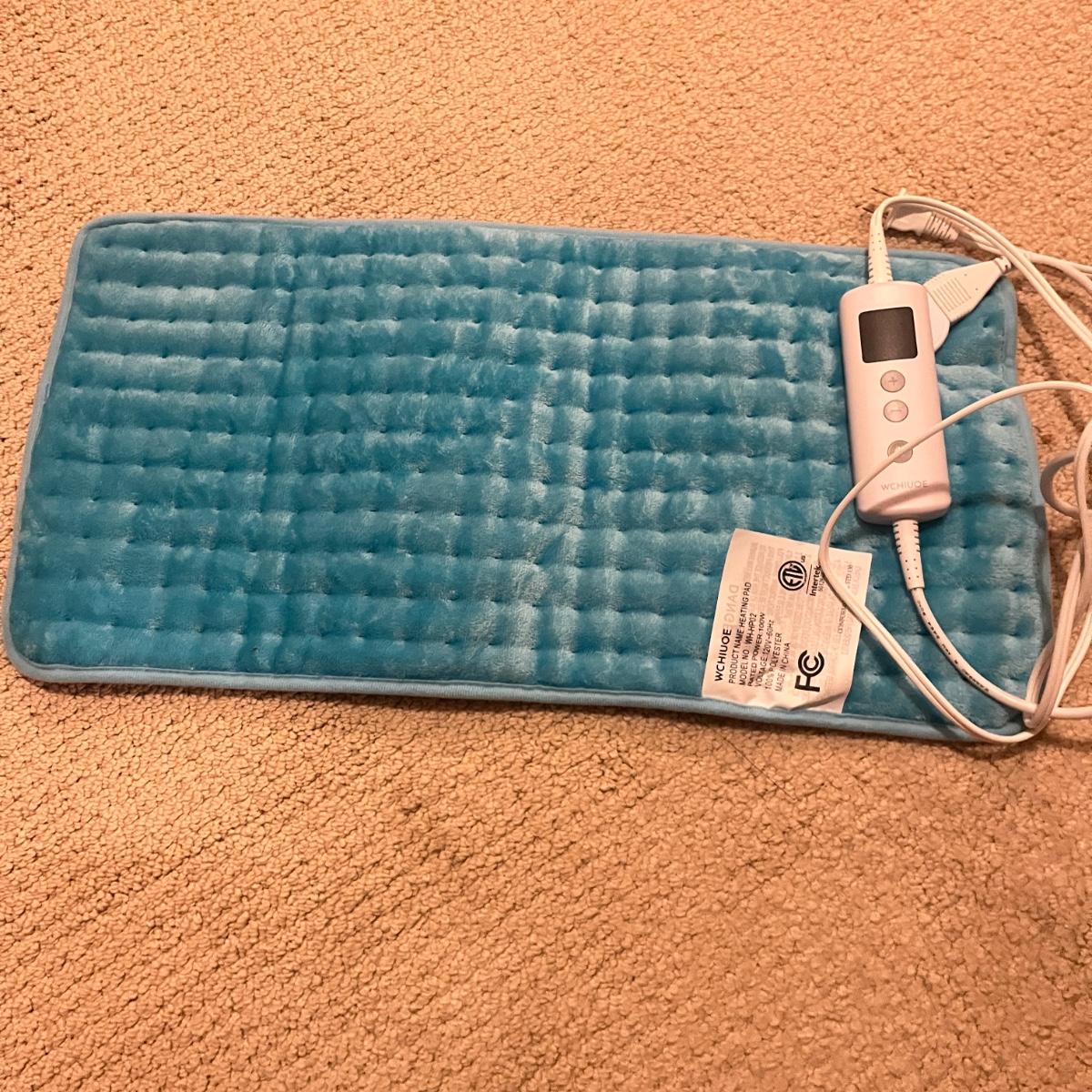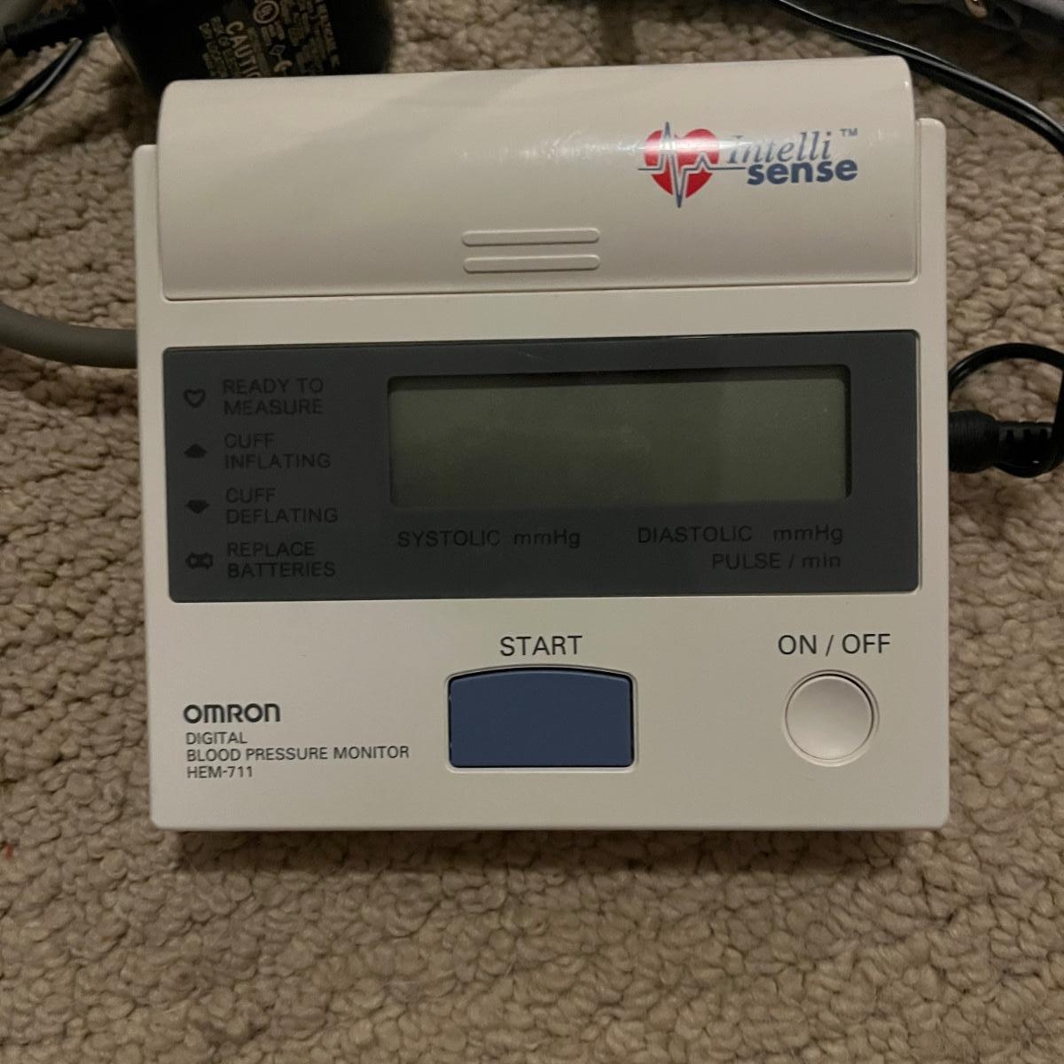 Lot includes Saunder cervical Hometrac, 3 and 5 pound dumbbells, heating pad, CVS blood pressure monitor NIB, Intelli sense blood pressure monitor and two shower chairs. BP monitor and heating pad both powered on when plugged in. Largest shower chair measures 21” x 30” x 33”H.