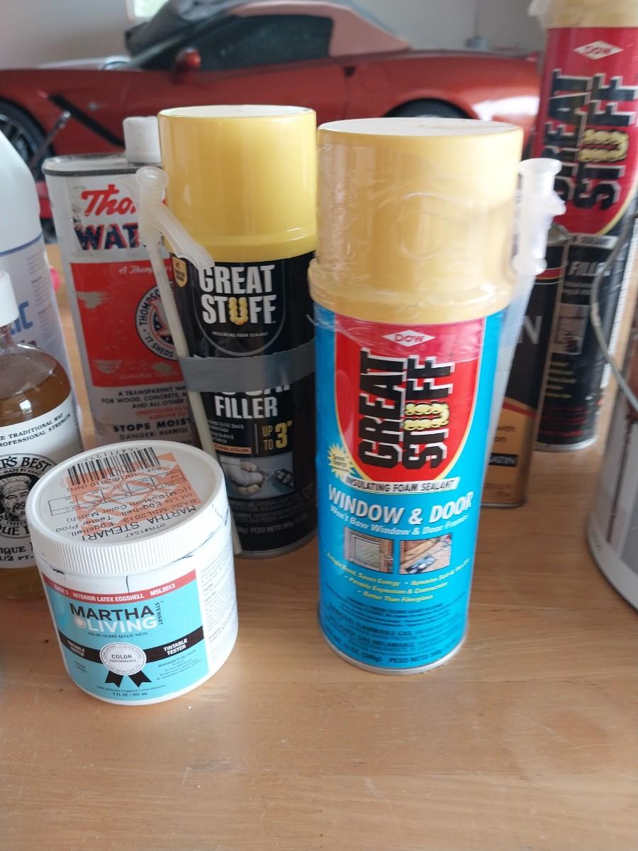 CANS OF GREAT STUFF-WATER SEAL-WIPE ON POLY AND MORE