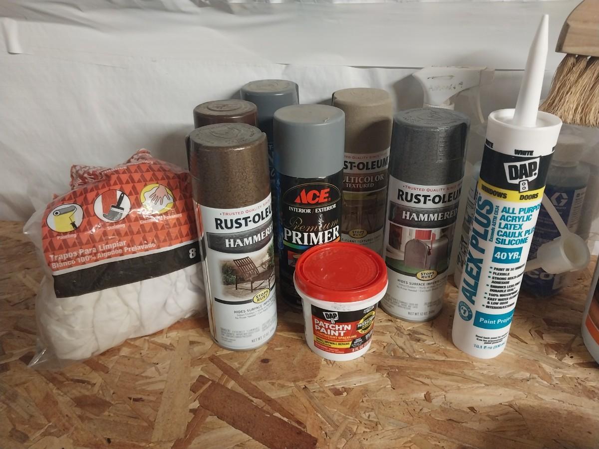 SPRAY PAINTS-CAULKING GUN-SPAKLING-CARPET TAPE AND MORE
