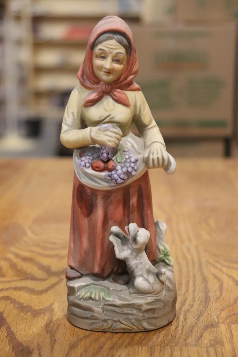 Home Interiors Vintage HOMCO 1417 Figurine Lady With Fruit and Puppy