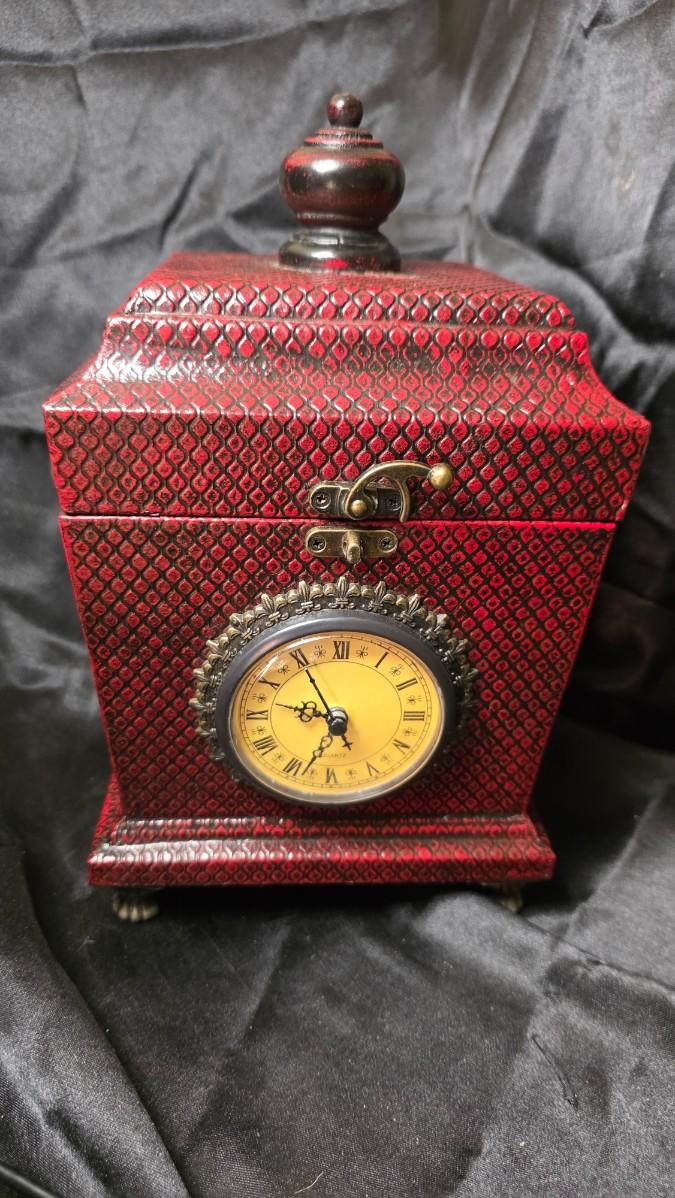 Home Interiors Vintage Red Clock Box – Faux Snakeskin Finish Decorative Storage Chest with Quartz Clock