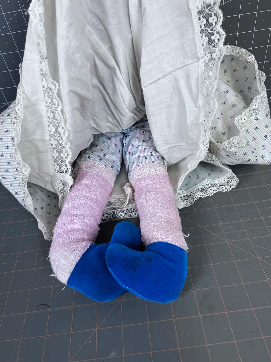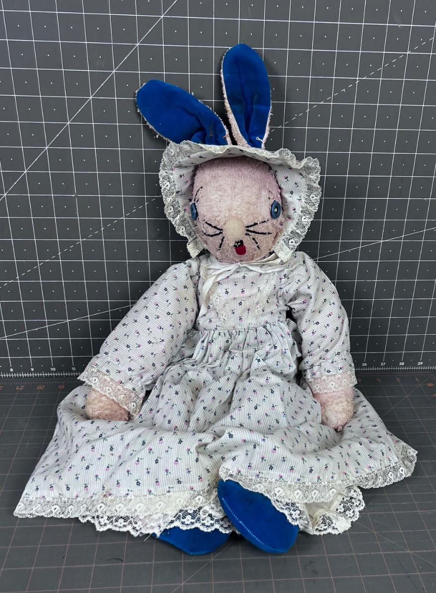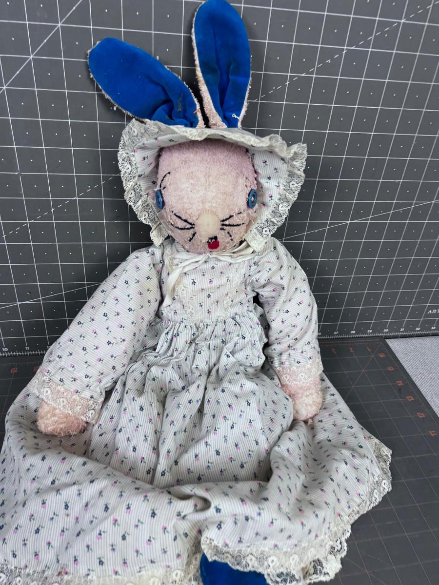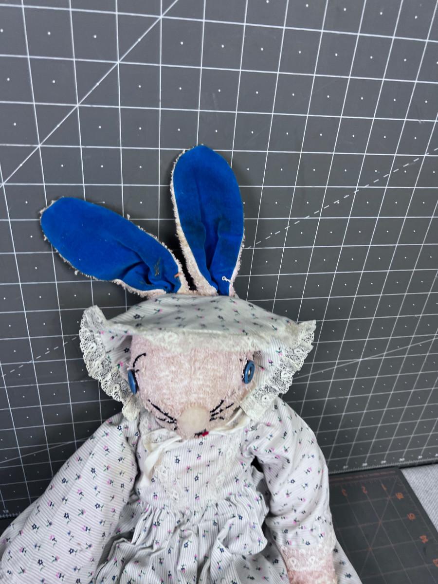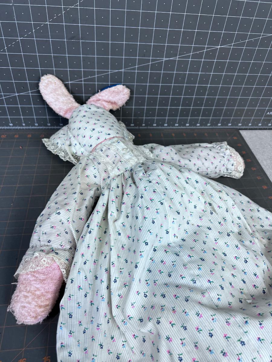Home Made Bunny made of Terry Cloth in a tiny print Dress and Bloomers