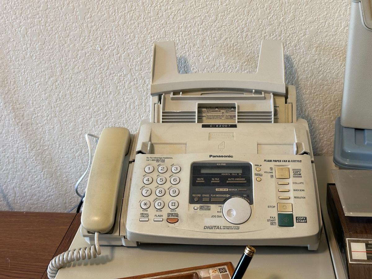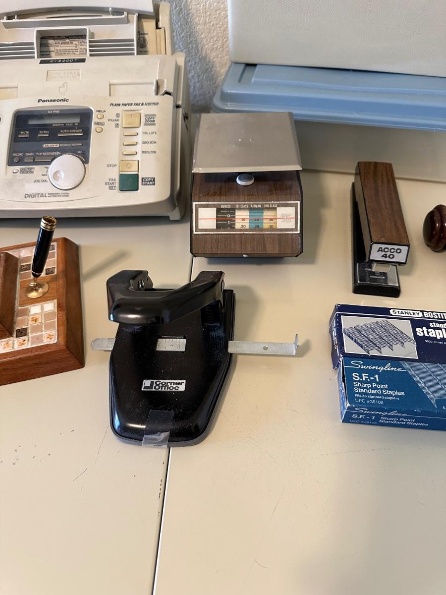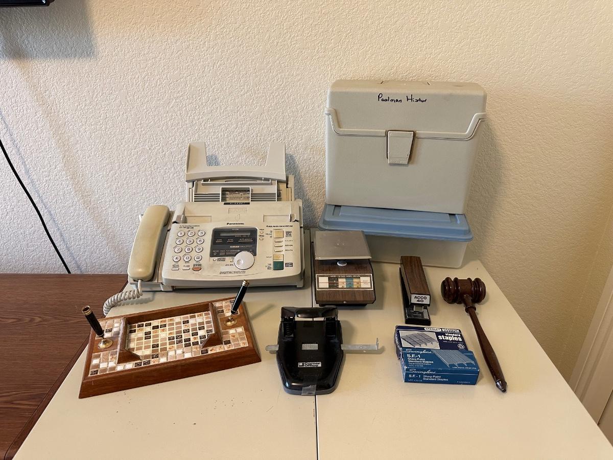 Panasonic Plain Paper Faxer KX-FP85, Stapler with Staples, 2 Hole puncher, Package/Mail scale and more