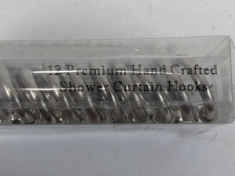 Home Spa Shower Curtain/Liner & 12 Premium Shower Curtain Hooks - New