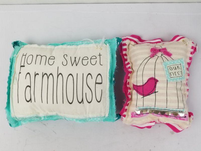 Home Sweet Farmhouse' 8" x 11", and 'Our Nest' 8" x 6" Decorative Pillows