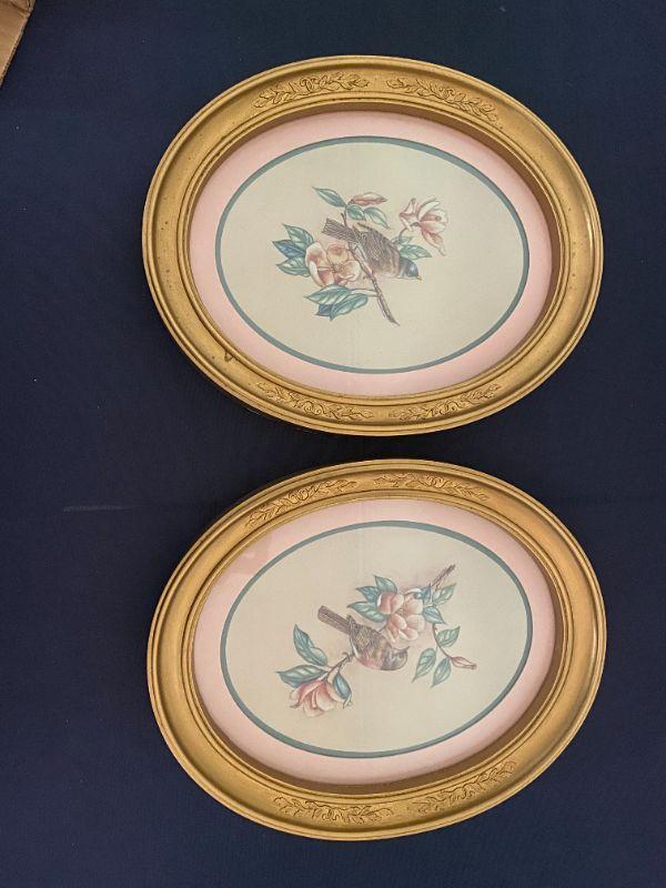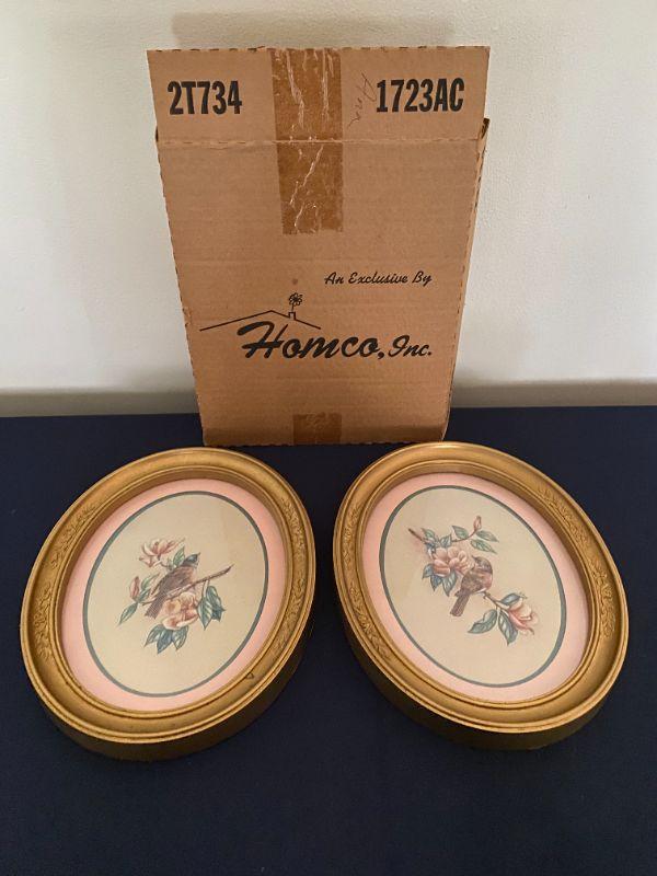 Homeco Bird Print Framed Oval picture, pr new in box