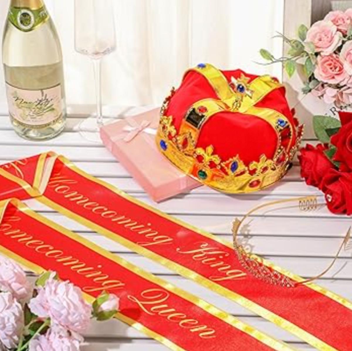 Homecoming King & Queen Party Supplies Prom Homecoming King & Queen Sashes, Crown, Hat & Rhinestone Tiara - Red