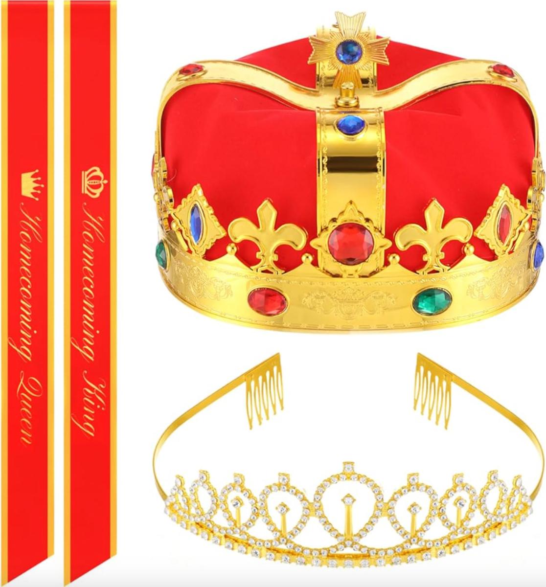 Homecoming King & Queen Party Supplies Prom Homecoming King & Queen Sashes, Crown, Hat & Rhinestone Tiara - Red