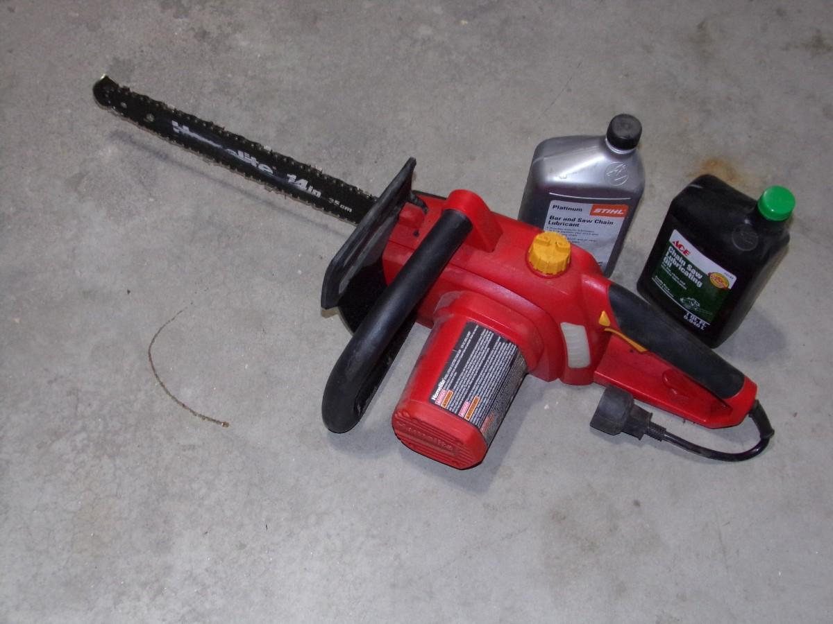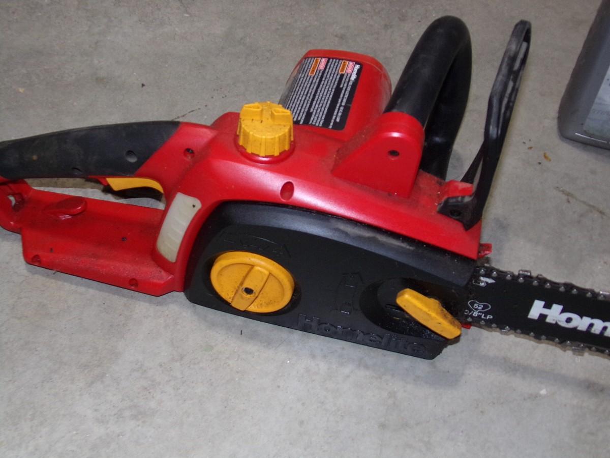 Homelite Chain Saw, 14" bar, electric 120v AC. w/some bar oil. Runs OK