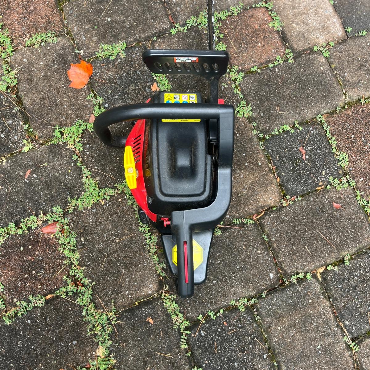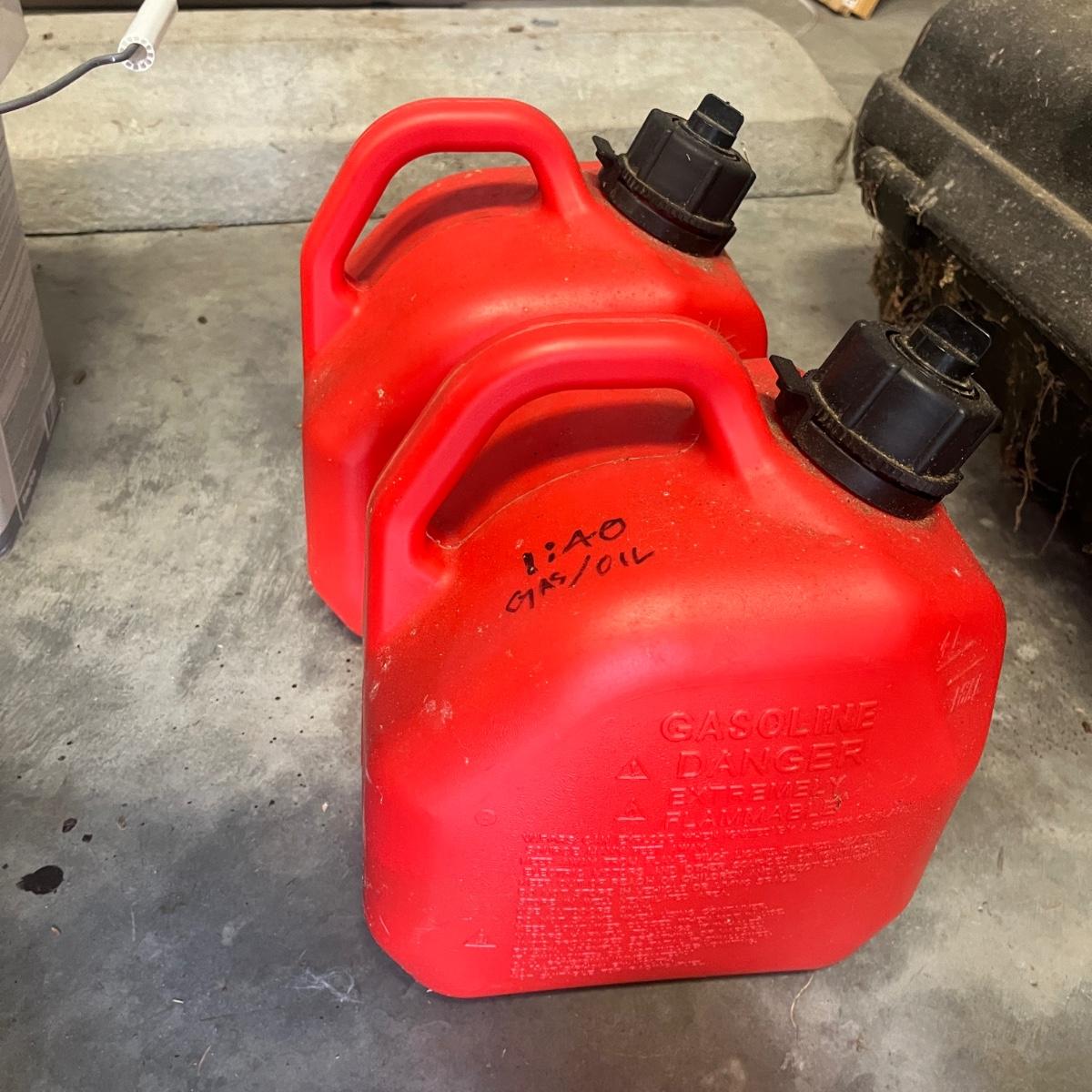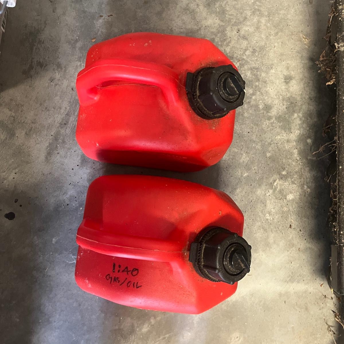 Lot includes a Homelite 16” bar chainsaw with plastic carrying case and safety glasses and ear protection. Also includes two one-gallon gas cans. Chainsaw started when starter cord was pulled. Gas cans have liquid in them, but we cannot guarantee what it is.