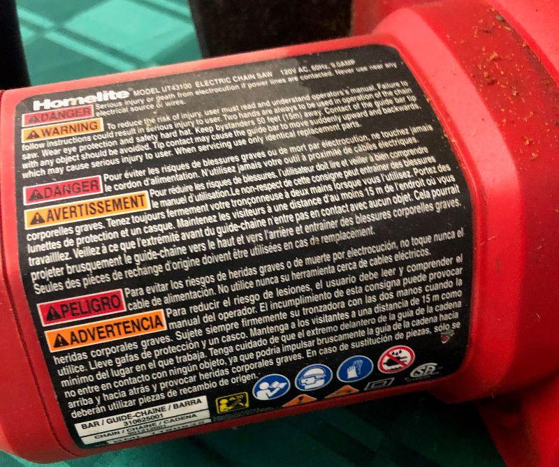 In good working condition here is an electric chain saw from HOMELITE...18" bar....
