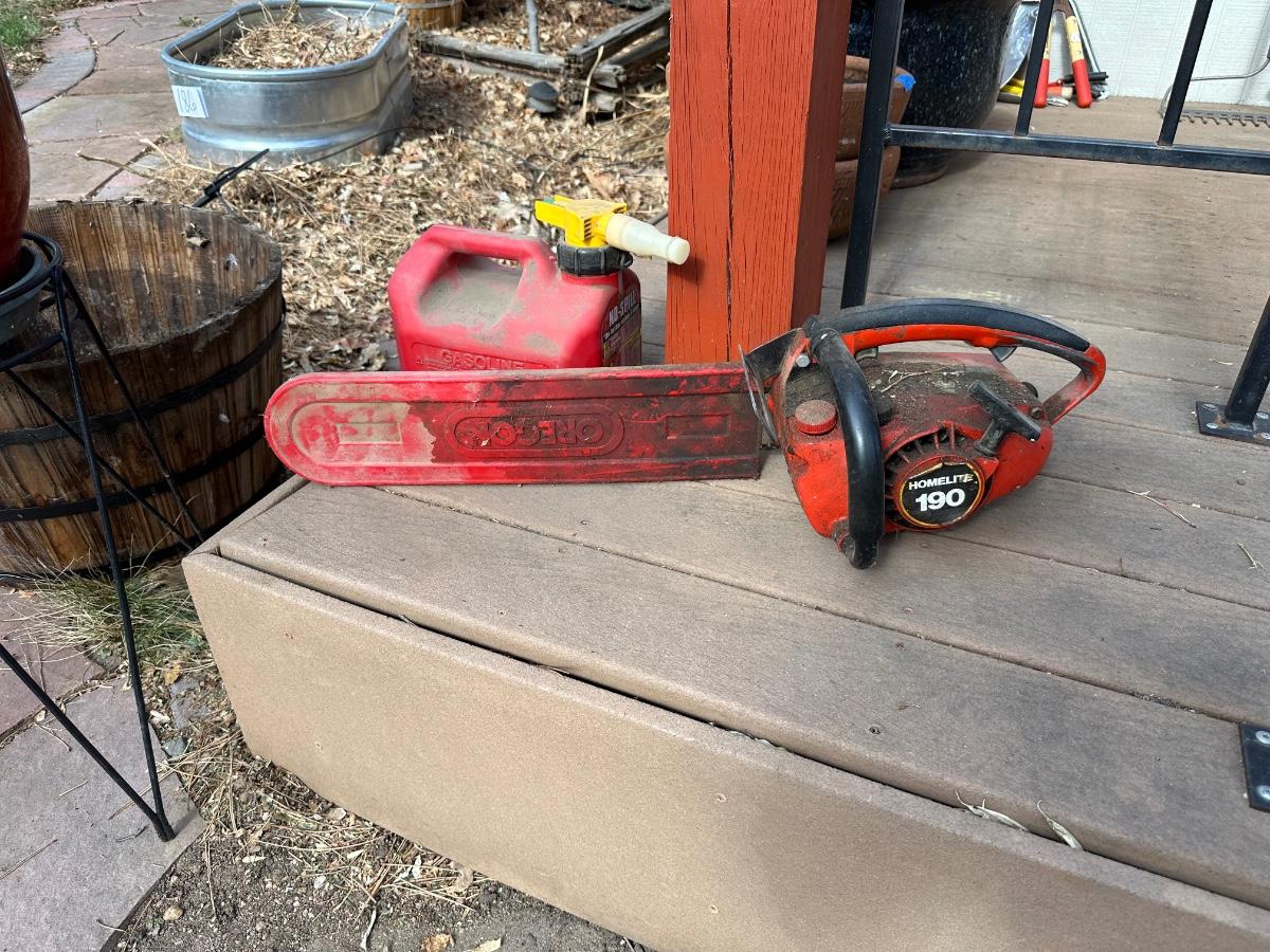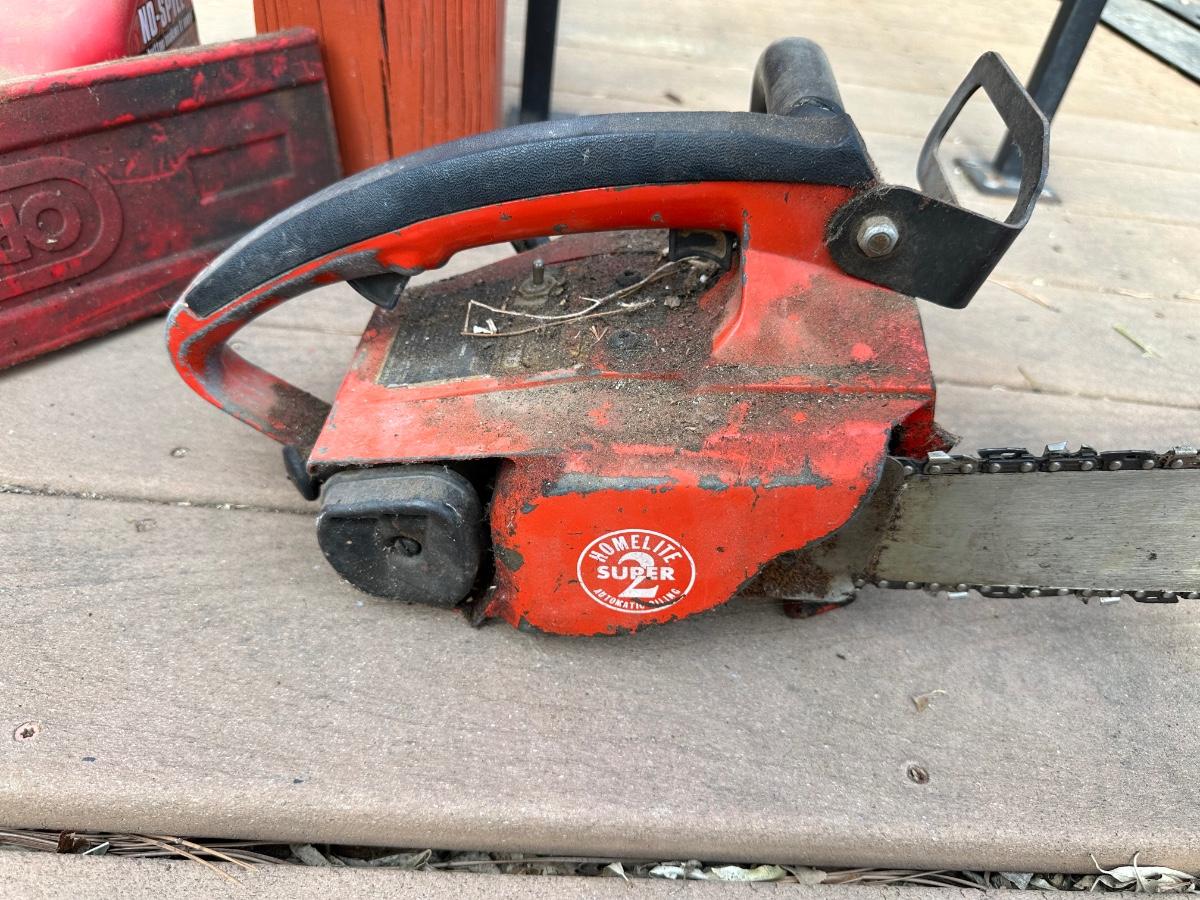 HOMELITE SUPER 2 CHAINSAW WITH GAS CAN