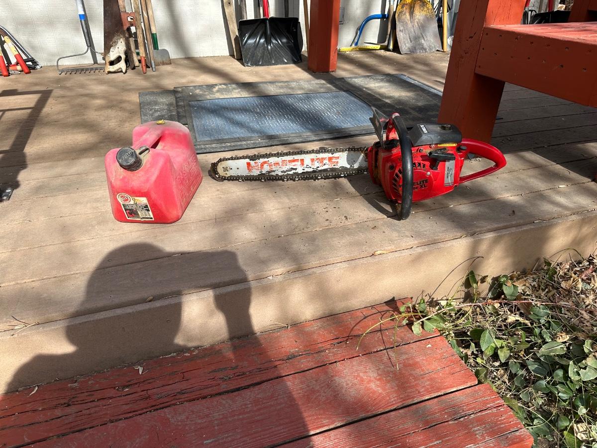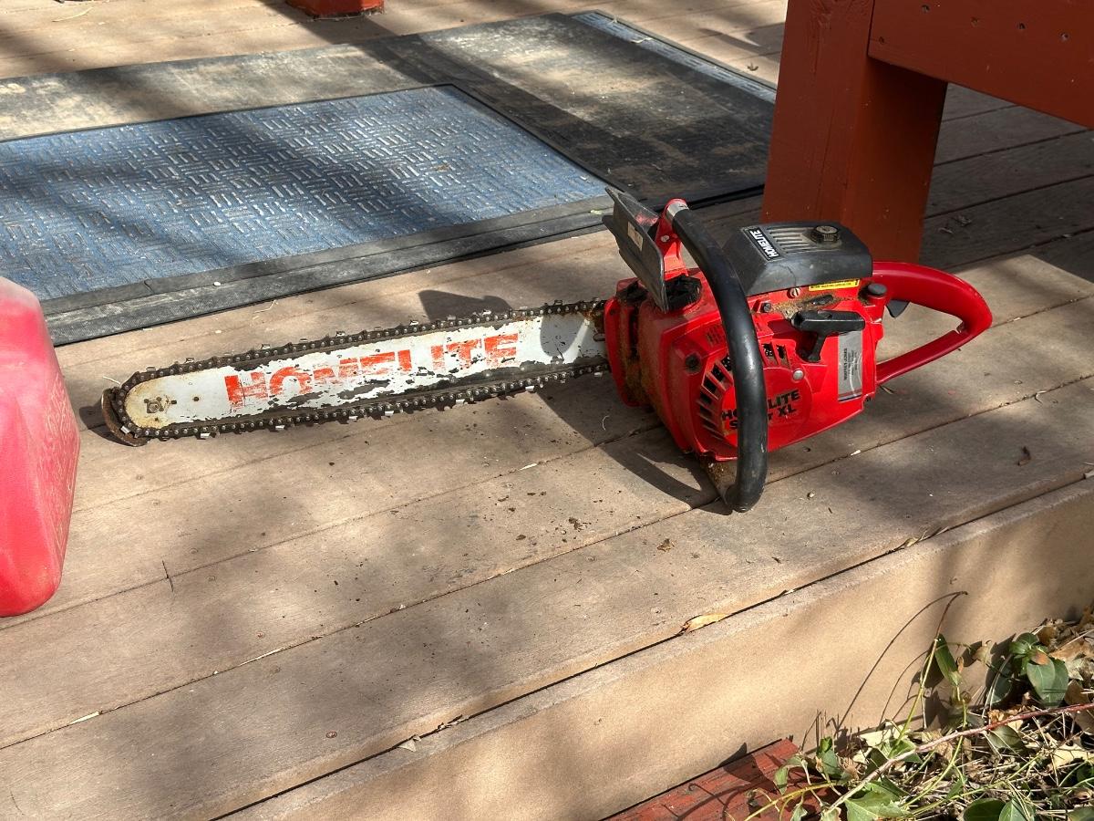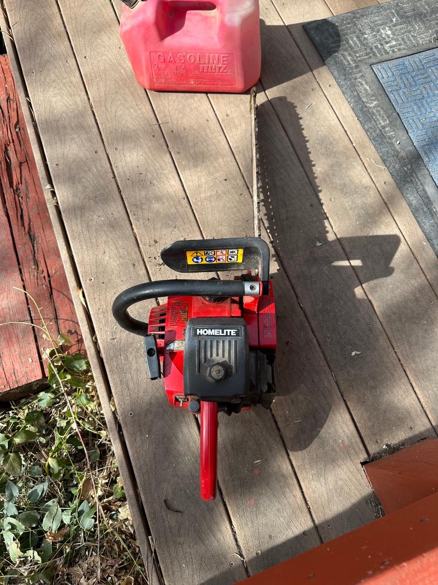 HOMELITE SUPER XL CHAINSAW WITH GAS CAN