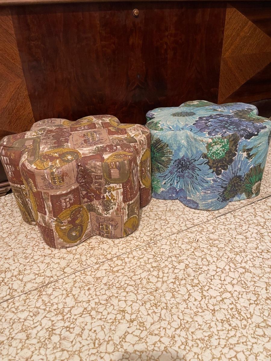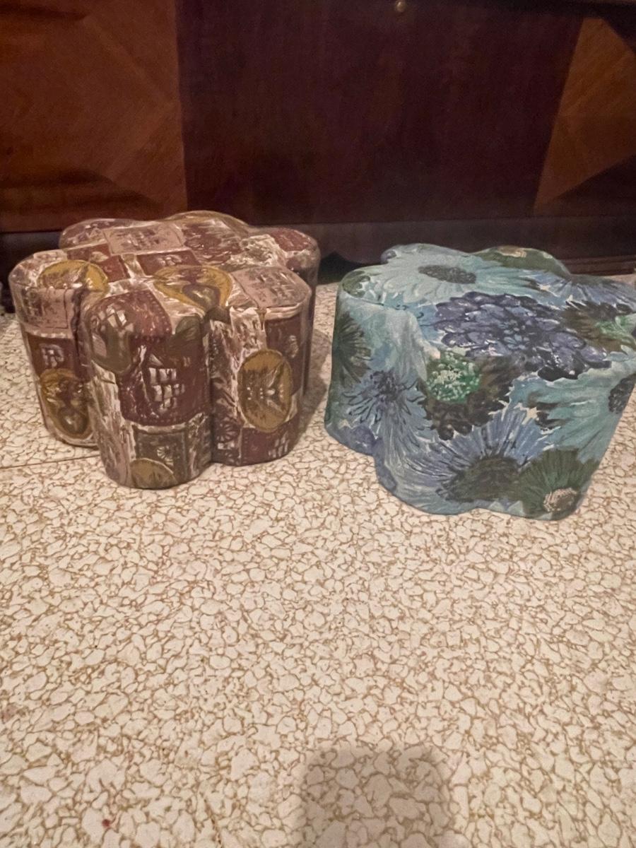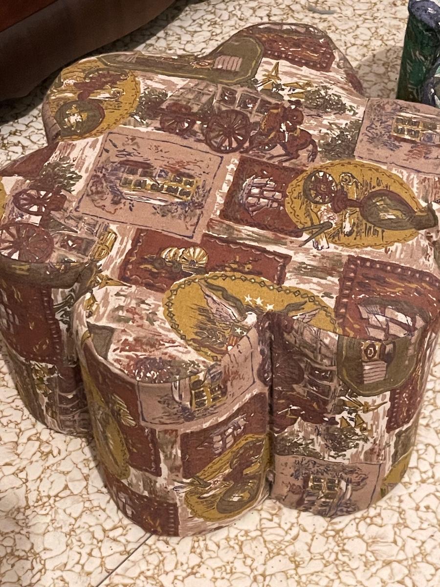 Another example of making what you need from what you have! I believe these are made with coffee cans or some kind of can. They’re super sweet little ottomans.