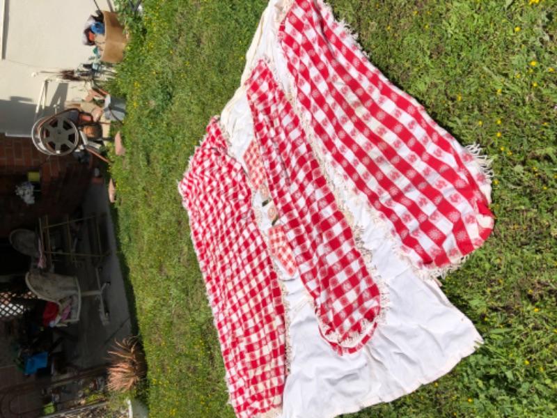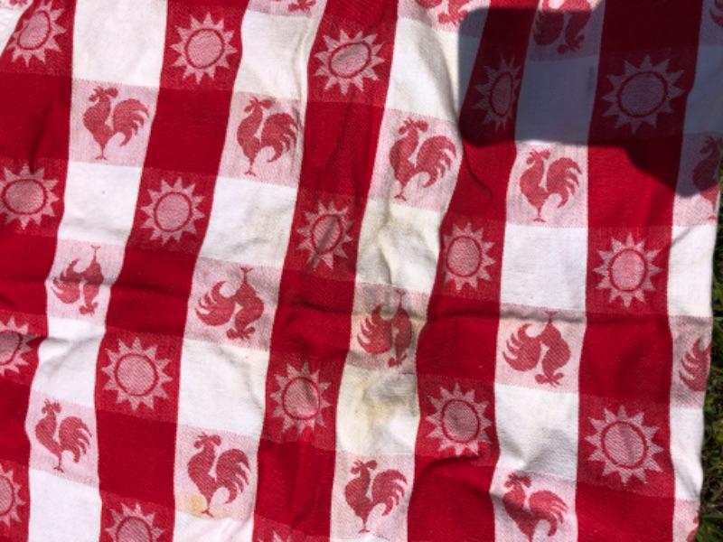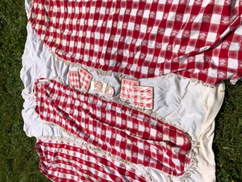 Perfect for vintage / retro camping scene! I’m thinking they might also fit the modern folding tables. 3 covers plus paper napkin and coasters to match. They do you have some light staining in spots but overall they’re great!