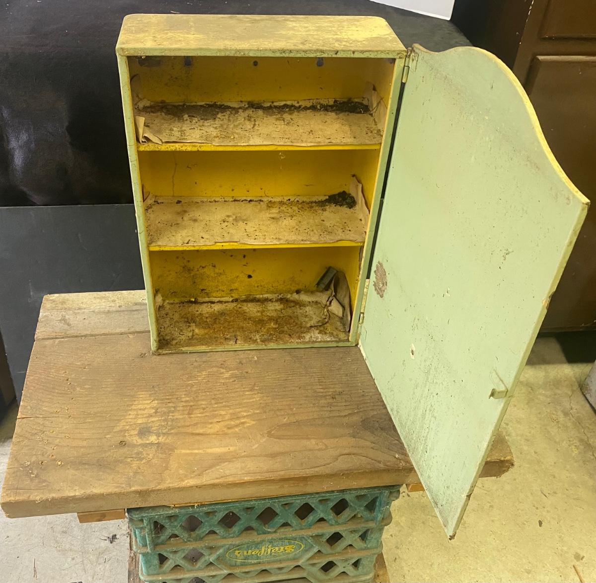 Homemade Stool on Rollers and Medicine Cabinet