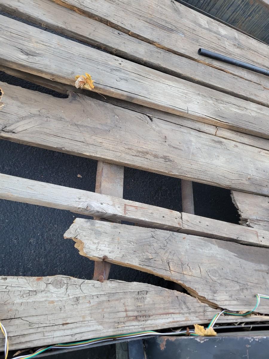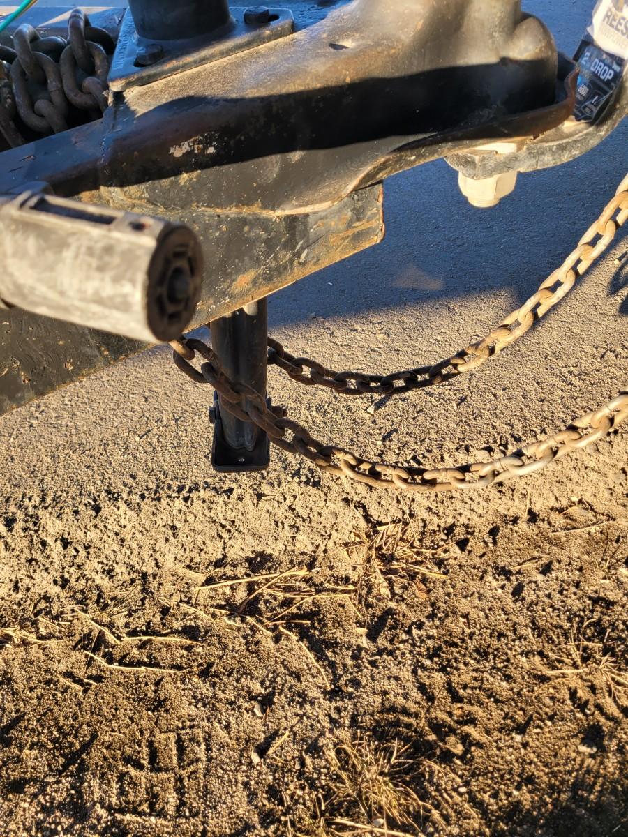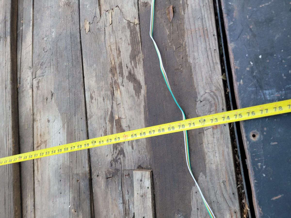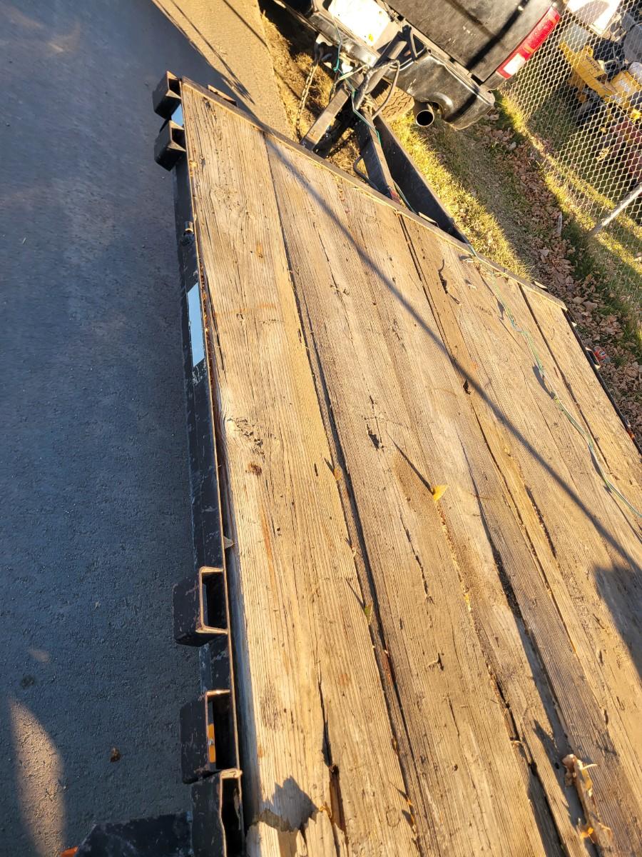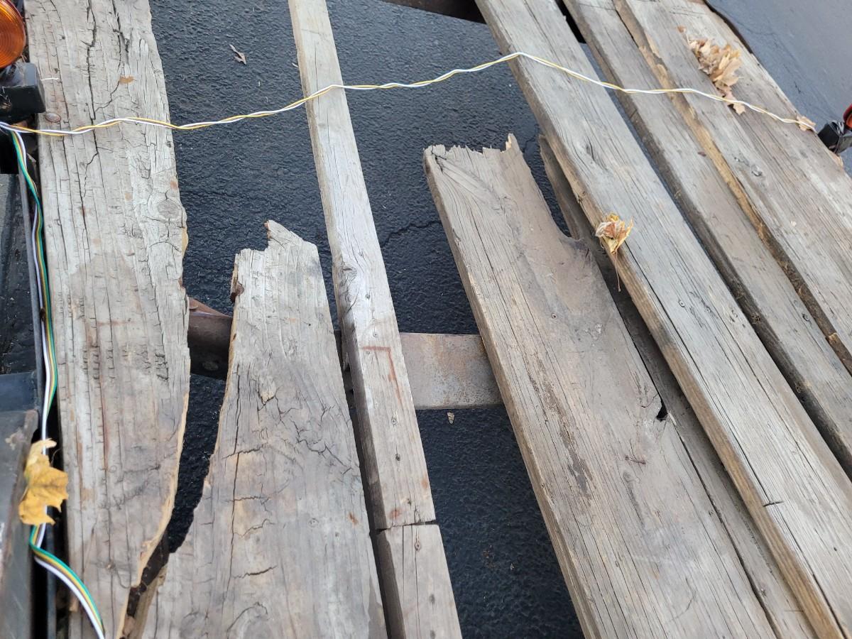 Trailer measures 17 feet long with an additional four foot tongue. Some of the lights work but this is definitely a project, needs decking and wiring and the jack does not go down. The good news is that it has one brand new tire that I put on and paid for in order to move the trailer, and that's where we're starting the bidding. Comes with the auxiliary removable magnetic lights. Two inch ball. Measures 6'3" between wheel wells